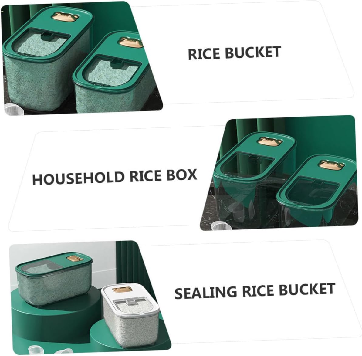 Package List 1 x Rice Bucket Characteristics - Capacity: 5kg rice container. - Size: 35.00X23.00X14.00cm/13.76X9.04X5.50inch. -Product Info: rice jar - Material: PET, PP. - This rice bucket is made of and has excellent durability and practicality. - Lightweight and easy to move, it will not take time and effort when moving, and will not take up too much space rice storage containers. - Anti- , moisture- and - , allowing you to rice and other miscellaneous grains rice storage container. - Provide a clean space, add some embellishment to your life, suitable for the kitchen Sealing Rice Bucket. - The perfect housewarming gift for friends to express your love and care rice container storage.Goods DescriptionSealing Rice Bucket Are you looking for a and rice storage box? If so, our rice bucket will surely meet your needs.plastic rice bucket It is one of the for you!.rice storage container Made of , it is not easy to deform and break, and can be used for a long time.multi-size rice storage bucket The perfect housewarming gift for friends to express your love and care