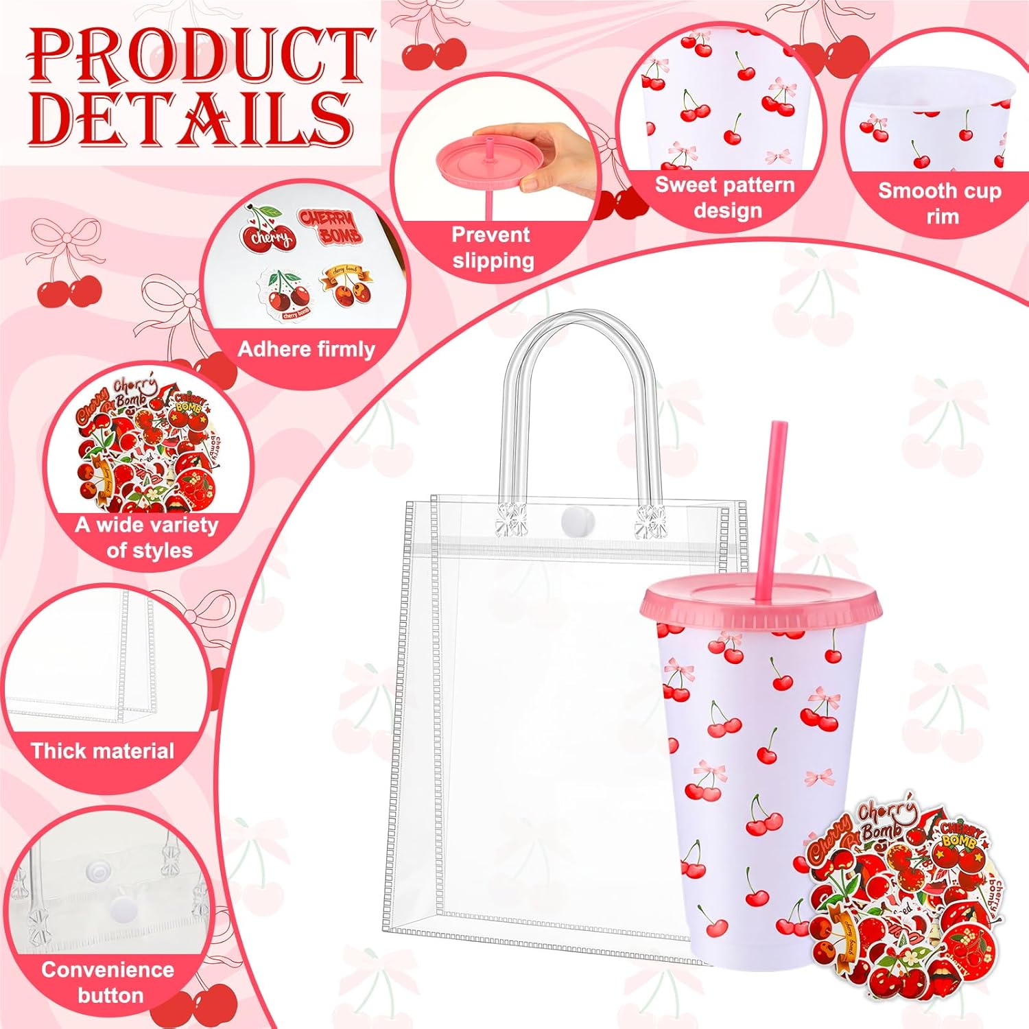 | Included Components | Cherry bow plastic tumbler with lid and straw, PVC gift bag, Red cherry sticker |