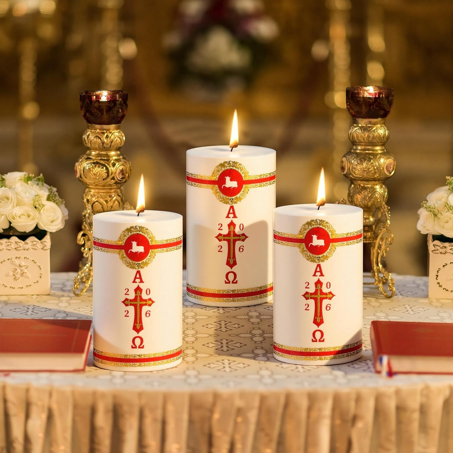 Features: Made of wax and hand-painted by artisans, church candles look beautiful and can comfort the hearth of Catholics during Lent, it also makes a nice belas para bautizo. Este cirio pascual es perfecto como velas para confirmacion o bautizo, candela para bautizo, cirios pascual, catolicos o devocionales lent candles. Specifications: Material: candle Color: mainly white and red Size: the size of the Catholic candle is 1.97 x 2.95 inches/ 5 x 7.5 cm Package includes: 12 x Cirio Pascual candles 12 x Jesus stickers Notes: Manual measurement, please allow slight errors on size. The color may exist a slight difference due to different screen displays. Beware of open flames