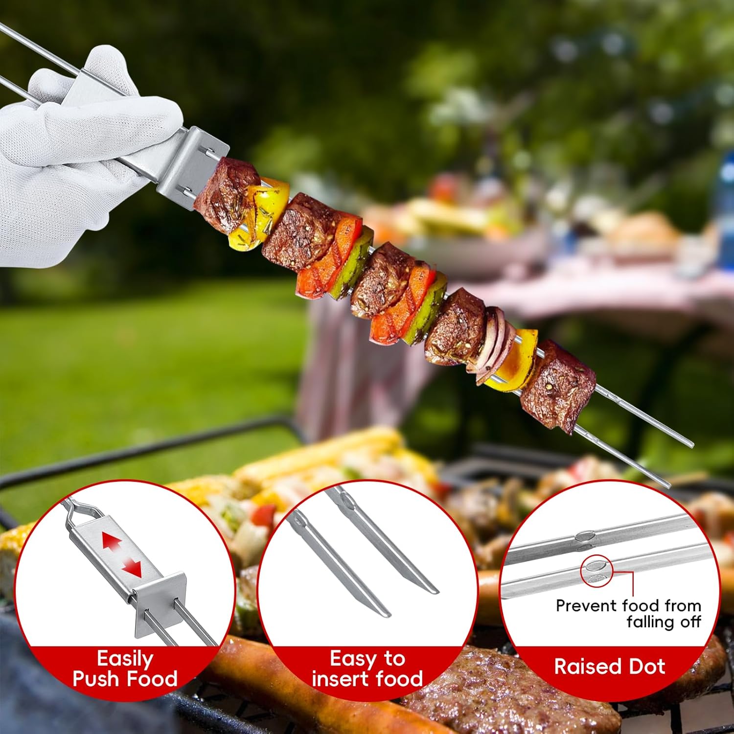 17 in 6(Packs) And 13 in 12(Packs) Bundle Set Skewers for Grilling, Stainless Steel Kabob Skewers With Push Bar, Double Fork BBQ Skewers for Meat, Vegetable