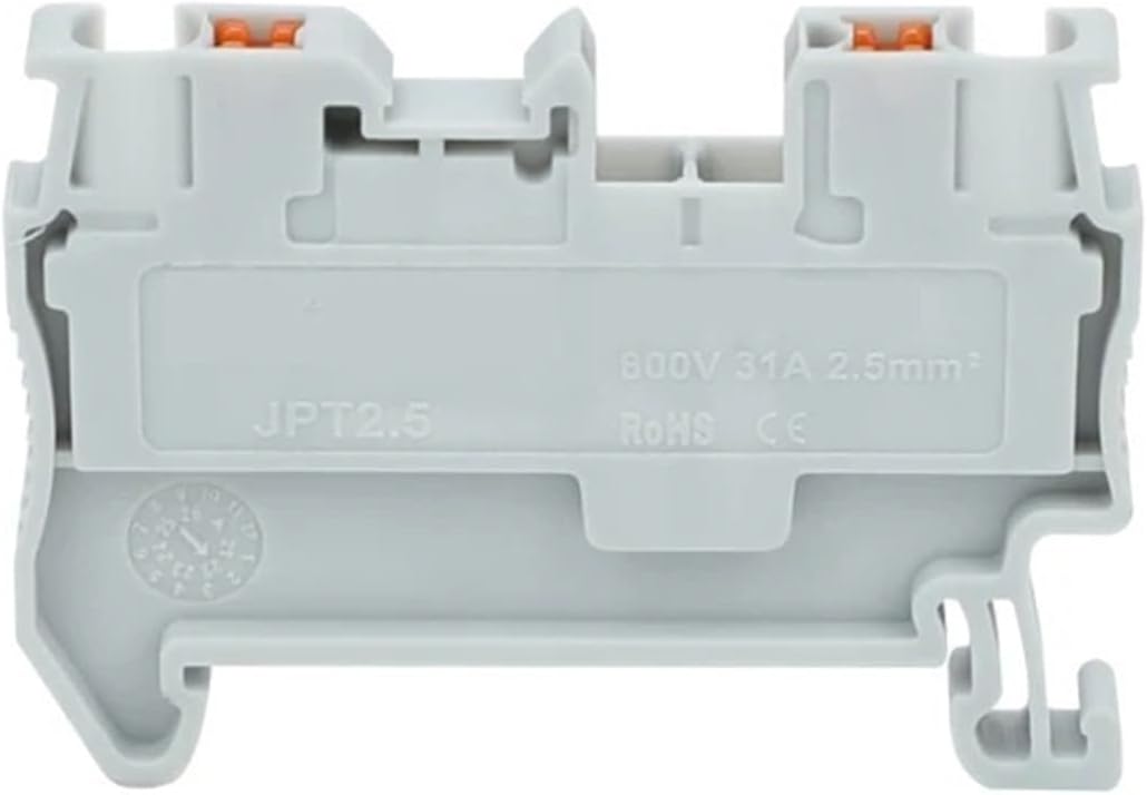 Wire TerminalsTECHNICAL PARAMETERSModel NumberPT 2.5ColorGrey, BlueLength/Wide/Height(mm)48.5/36/5Connection methodPush-in connectionMaterialNylon PA66Rated Voltage/Current800V/31ACross section, solid/soft Cable0.2-4mm2/ 0.2-2.5mm2Conductor Size24-12 AWGMounting TypeNS 35/7.5StandardIEC 60947-7-1Packing Detail5.79g/pc