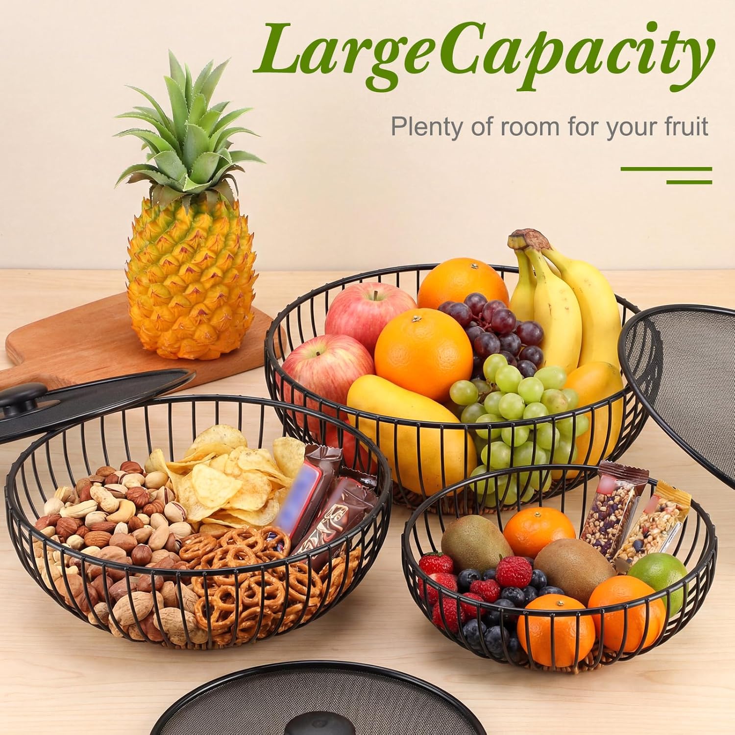 | Included Components | 3 x Metal wire mesh fruit baskets |