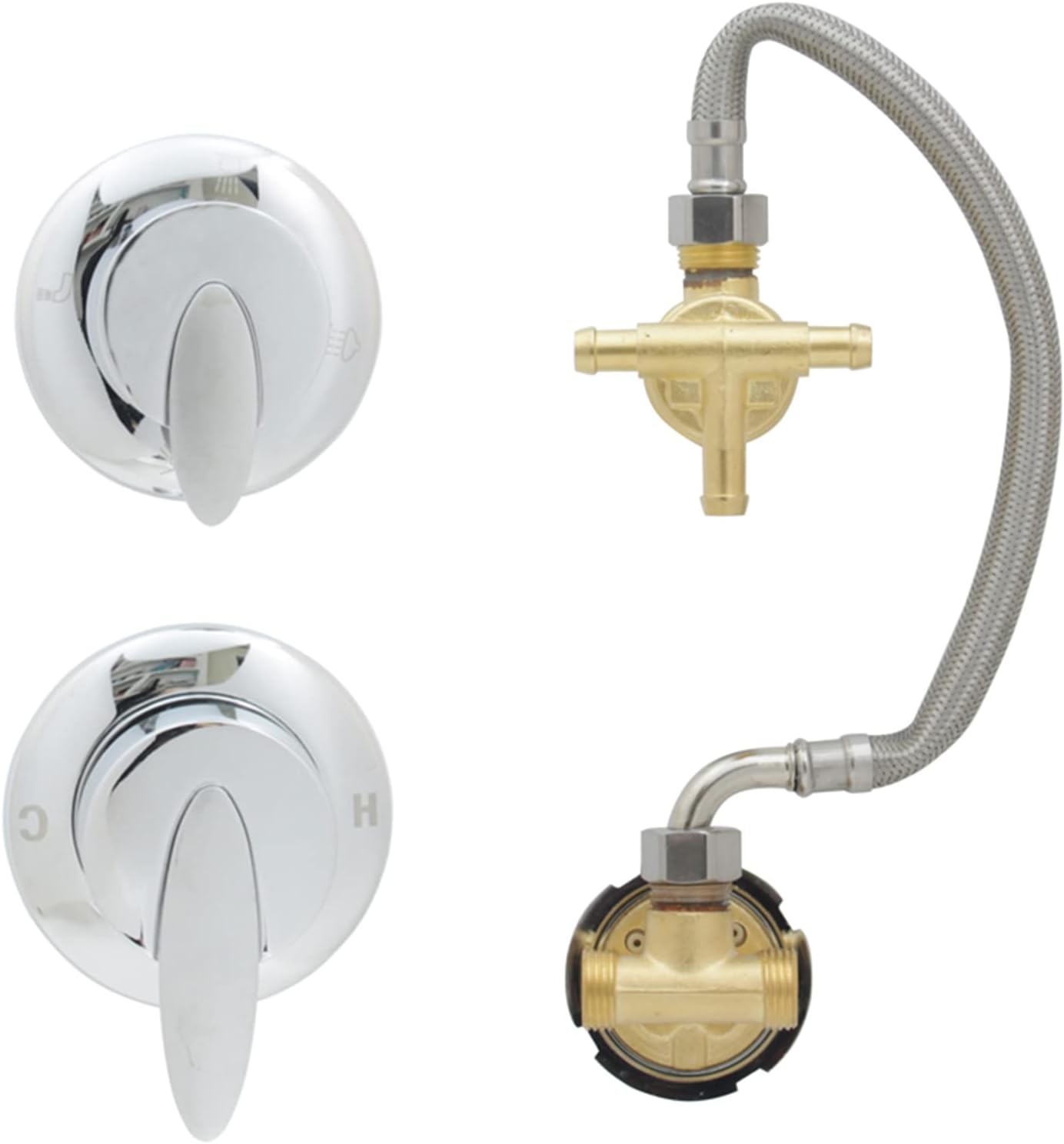 Upgrade your shower experience with our premium water mixer faucet, designed for both functionality and style. Crafted frombrass and fitted with a high-quality ceramic cartridge, this faucet ensures long-lasting performance and reliability. The sleek chrome finish not only adds a touch of elegance to your bathroom but also offers easy maintenance and a modern aesthetic. Measuring under 130mm, this compact design is perfect for various installations, whether in a steam shower, bathtub, or bathroom sink. The G1/2" connector and versatile installation method make it compatible with most plumbing systems, while the 3/4/5 way output adjustment allows you to customize your water flow according to your needs. With a double handle for precise control over hot and cold water, this faucet provides an optimal mixing experience. The fixed rotary type ensures smooth operation, making it a convenient choice for daily use. Ideal for a wide range of applins, from luxurious spa-like showers to functional bathroom sinks, this water mixer faucet enhances both the look and functionality of your space. Transform your bathroom into a sanctuary of relaxation with our stylish and efficient water mixer faucet. Enjoy every moment spent in your shower or bath, knowing you have a reliable and elegant solution at your fingertips. Make your purchase today for a blend of luxury and practicality that suits your lifestyle.