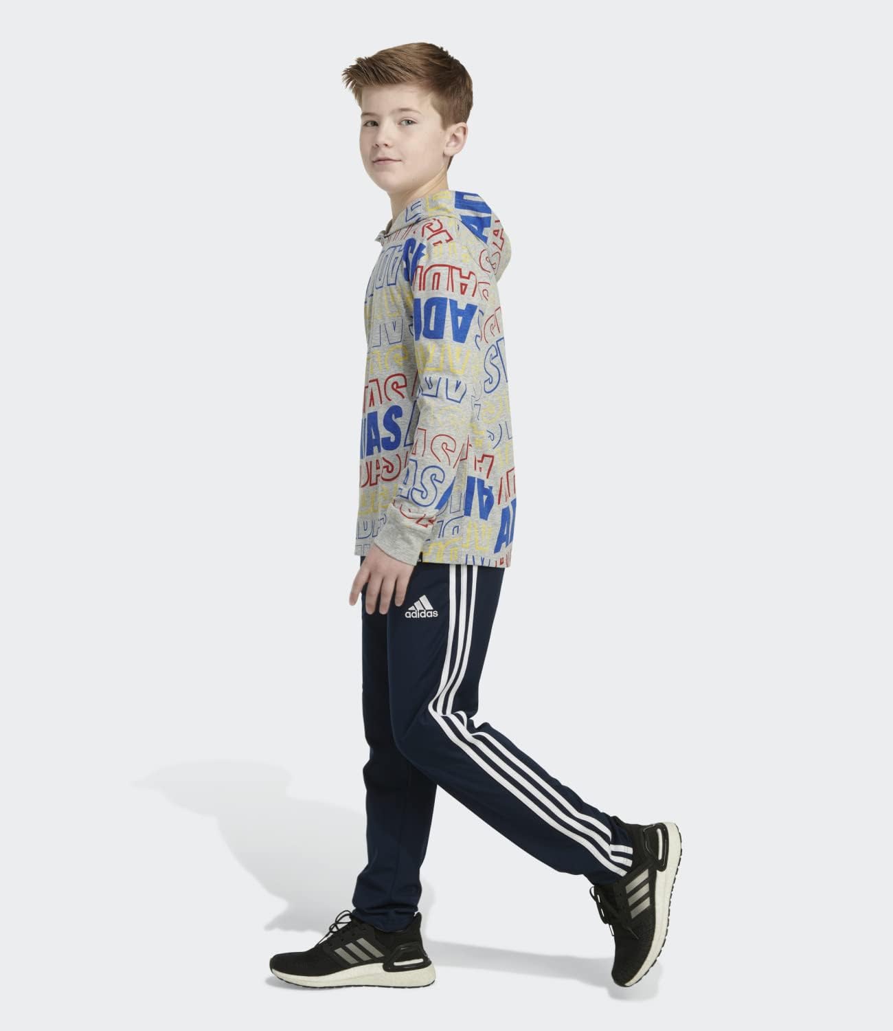 Gradient color on this boys' adidas hoodie t-shirt levels up his style. A warped version of the adidas logo on the sleeves gives him a fresh, edgy design. All-cotton jersey feels so soft he may want to wear it non-stop.