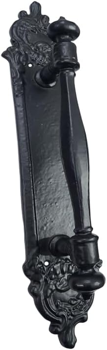 Adonai Hardware 12" "Mishma" Heavy Duty Cast Iron Door Pull with 17.50" Backplate - Matte Black