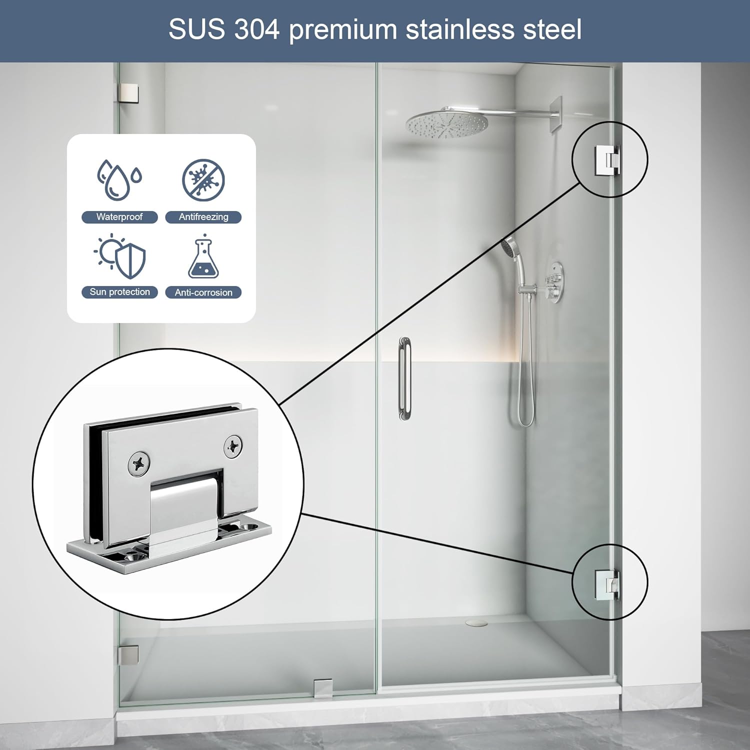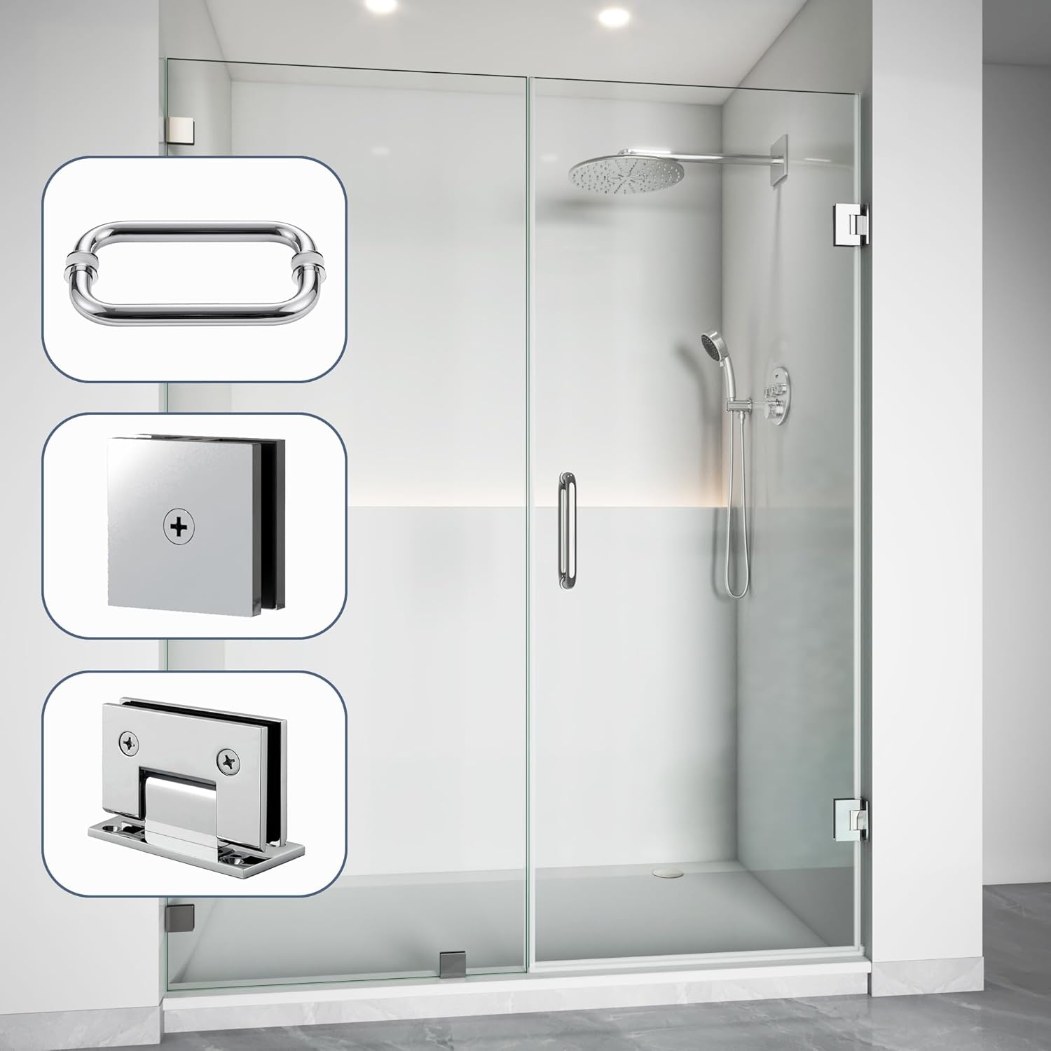 | Included Components | Glass Clamps, Hinges, Towel Bar Handle |