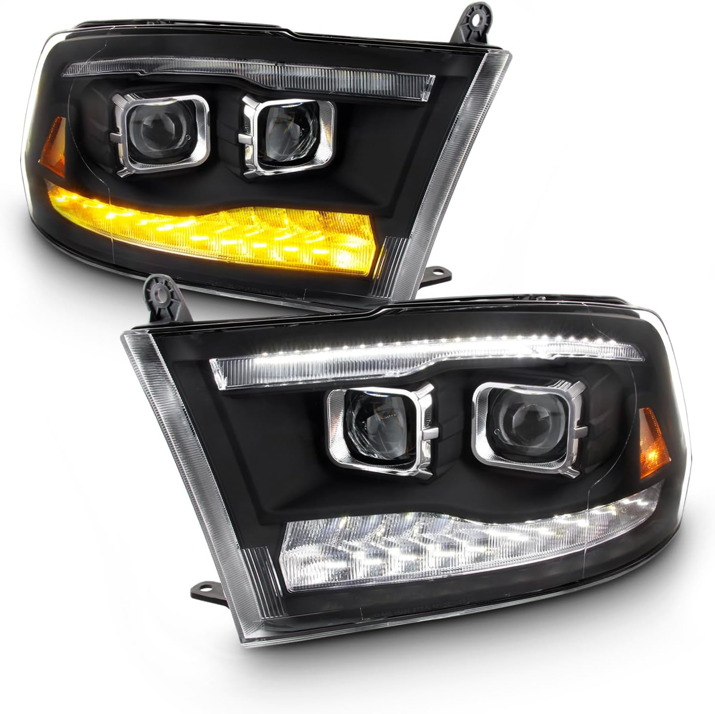 This is a 100% brand new pair of Headlights Replacement Assemblies in Midnight Black Housing With Crystal Clear Lens, Tail Lights Assemblies in Black Housing With Crystal Clear Lens.Compatible With: 2009-2018 Ram 1500 2010-2018 Ram 2500/3500 2019-2023 Ram 1500 Classic ***Not Compatible on Models w/ Factory Projector Headlights******Not Compatible on 2013-2023 Models w/ OEM LED Tail Lights***