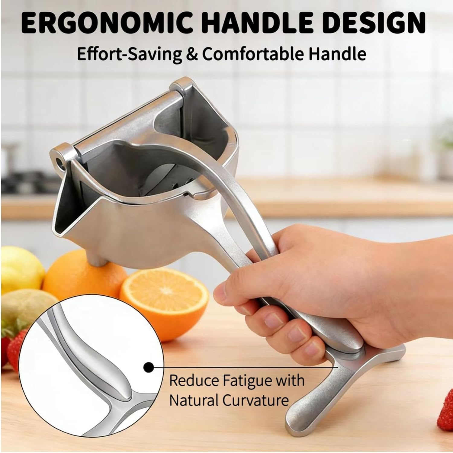 Heavy-duty manual juicer handle, easily extracts every drop of freshness from citrus fruits (lemons/limes/oranges) — rust-resistant, easy to clean, suitable for kitchen, bar, and outdoor use. Durable aluminum build Ergonomic handle Suitable for a variety of fruits High juice yield Specifications: Size: 20.5 x 12 cm Color: Silver Material: Aluminum Alloy Weight: 400g