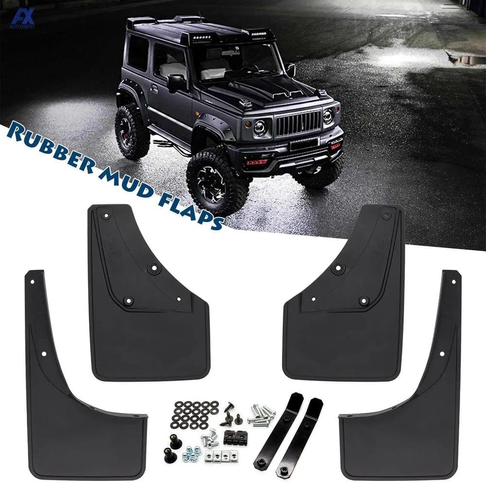 Product:4Pcs For Suzuki Jimny Sierra JB64 JB74 2019 2020 2021 Mudguards Splash FlapMaterial:High Quality Flexible PP+TPO PlasticFitment: For Suzuki Jimny JB64 JB74 2019-OnNote: Not Fit with Side skirts, body modifications etc.Package includes:4 mud flaps (2pcs front L/R & 2pcs Rear L/R), 1 bag of screw fixings.Features:Easy direct Installation.Simple and fashion design.Make your car looks more cool and distinctive.Protection your car far from dirt, mud, snow,etc.Enhances appearance and adds stylish individualism.Fenders can also reduce the amount of mud and water deposited on the sides and chassis of the car, eliminating the need for frequent car washing