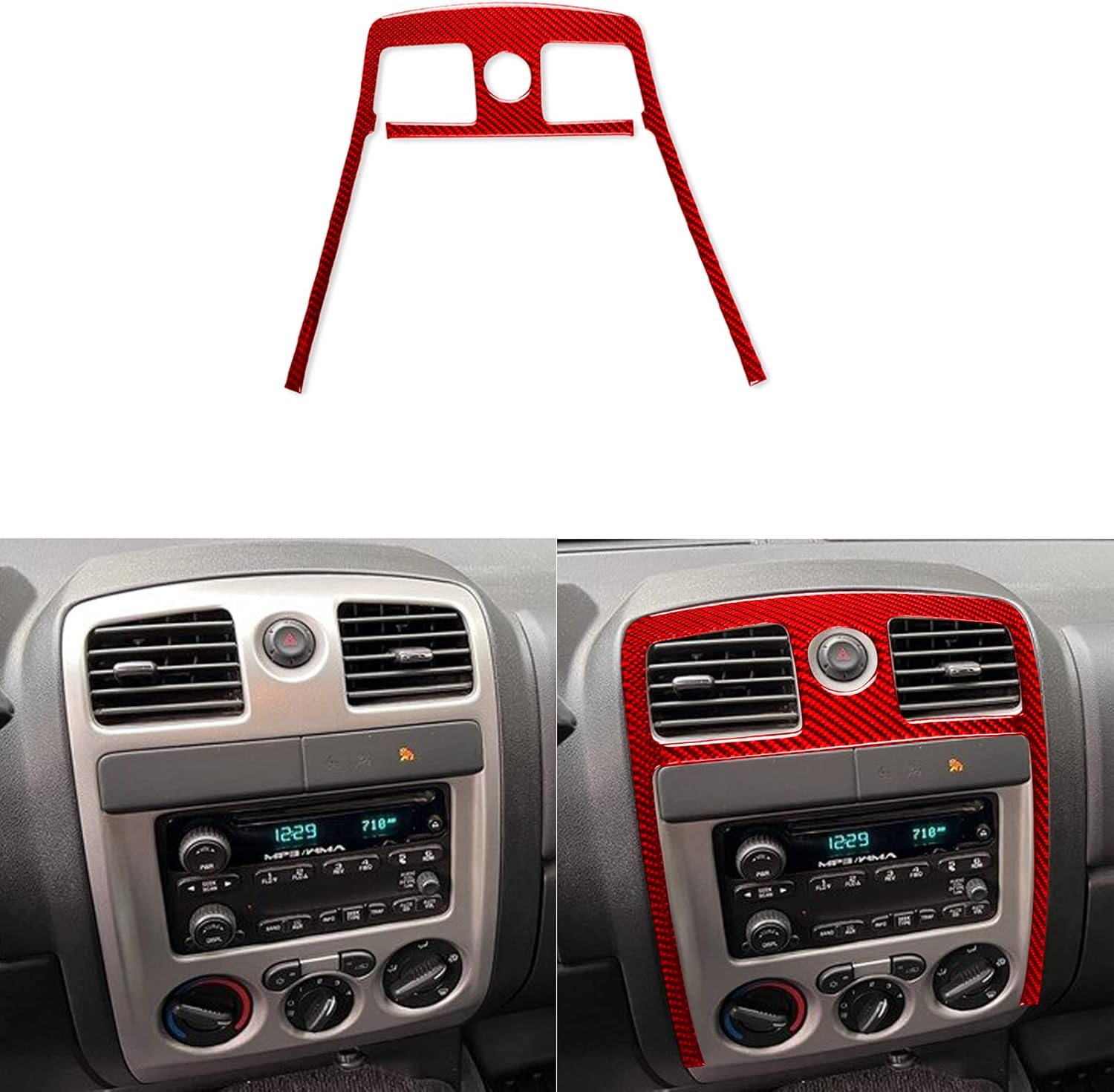 Color: Black or redCompatible modle:Compatible with Chevrolet Colorado 2004 2005 2006 2007 2008 2009 2010 2011 2012.Compatible with GMC Canyon 2005 2006 2007 2008 2009 2010 2011 2012.Conditions:1.100% new, 3D carbon fiber texture stickers bring a different look and feel to the car, improve the grade of the car, highlight the personality.2. Installation can be completed in a few minutes without maintenance or cutting.3. This carbon fiber sticker is customized to the original dimensions of the car's interior and fits perfectly.Installation method:1. Before installation, clean the parts to be pasted with alcohol or detergent to ensure that they are clean and dry.2. Align the position to be pasted, remove and paste the protective film on the back.3. After aligning and pasting, you can press for a few minutes to squeeze out bubbles to make the carbon fiber sticker stick more firmly.4. Within 24 hours after installation, avoid contacting items that may be affected by moisture to avoid affecting the bonding effect.Tips:Before buying, please carefully compare your car to our pictures to see if it fits your car.When the ambient temperature is below 20°, you can use a heating gun to heat the glue on the back to make it easier to paste.If you encounter difficulties during the installation, seek professional help.