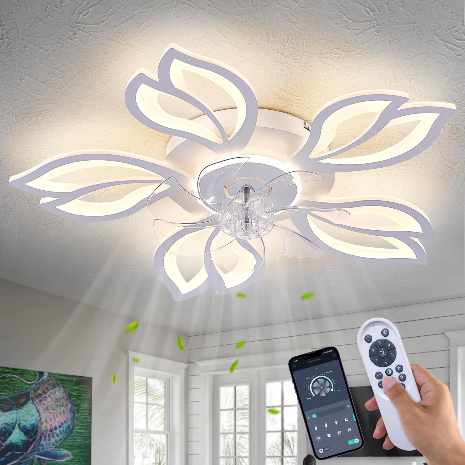 | Special Features | 3-Color Modes, 6 Wind Speed, Bladeless ceiling fan with light, Geometric ceiling fan with light, Remote Control |