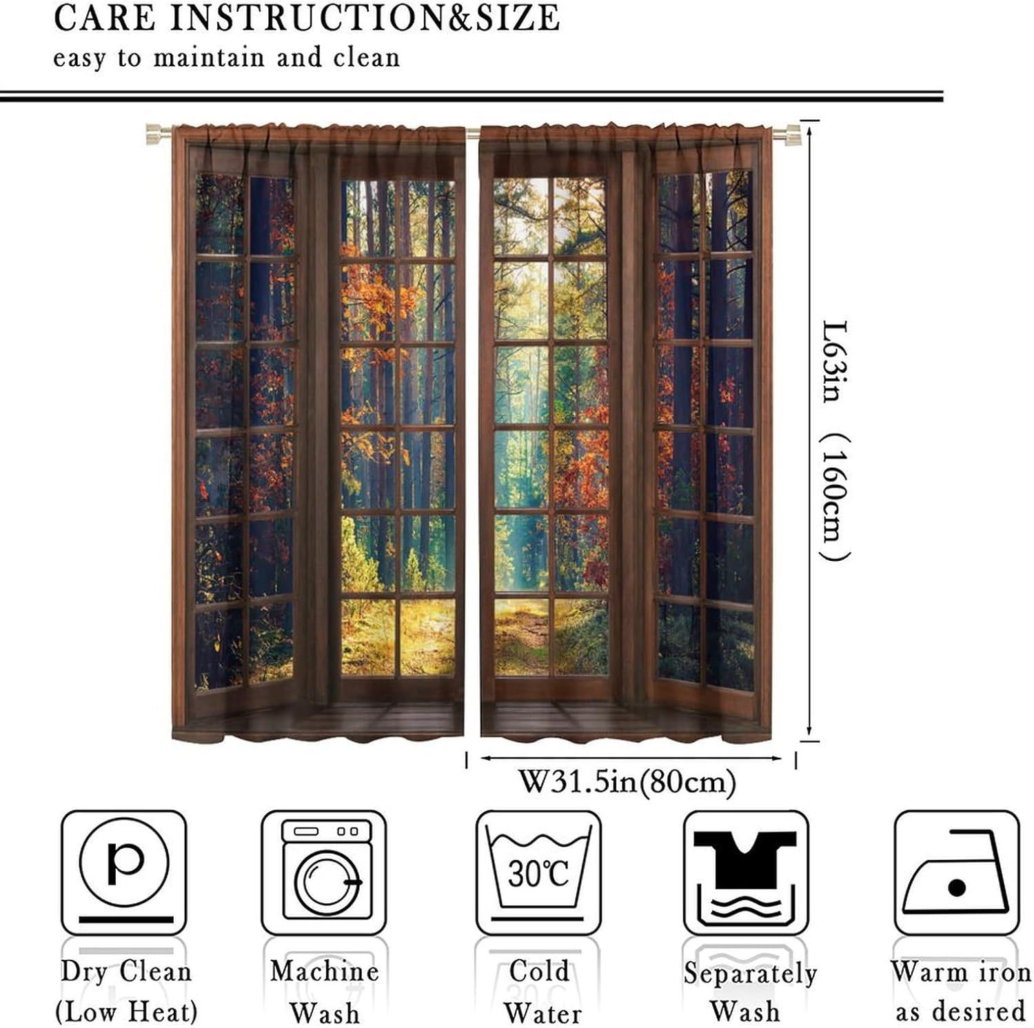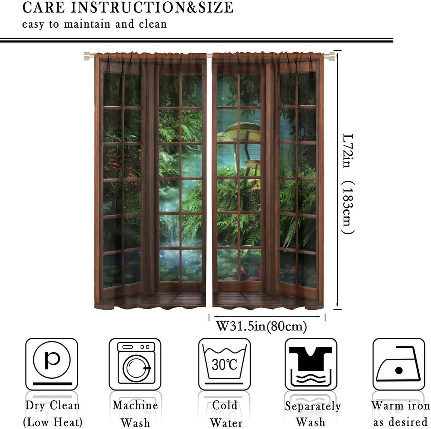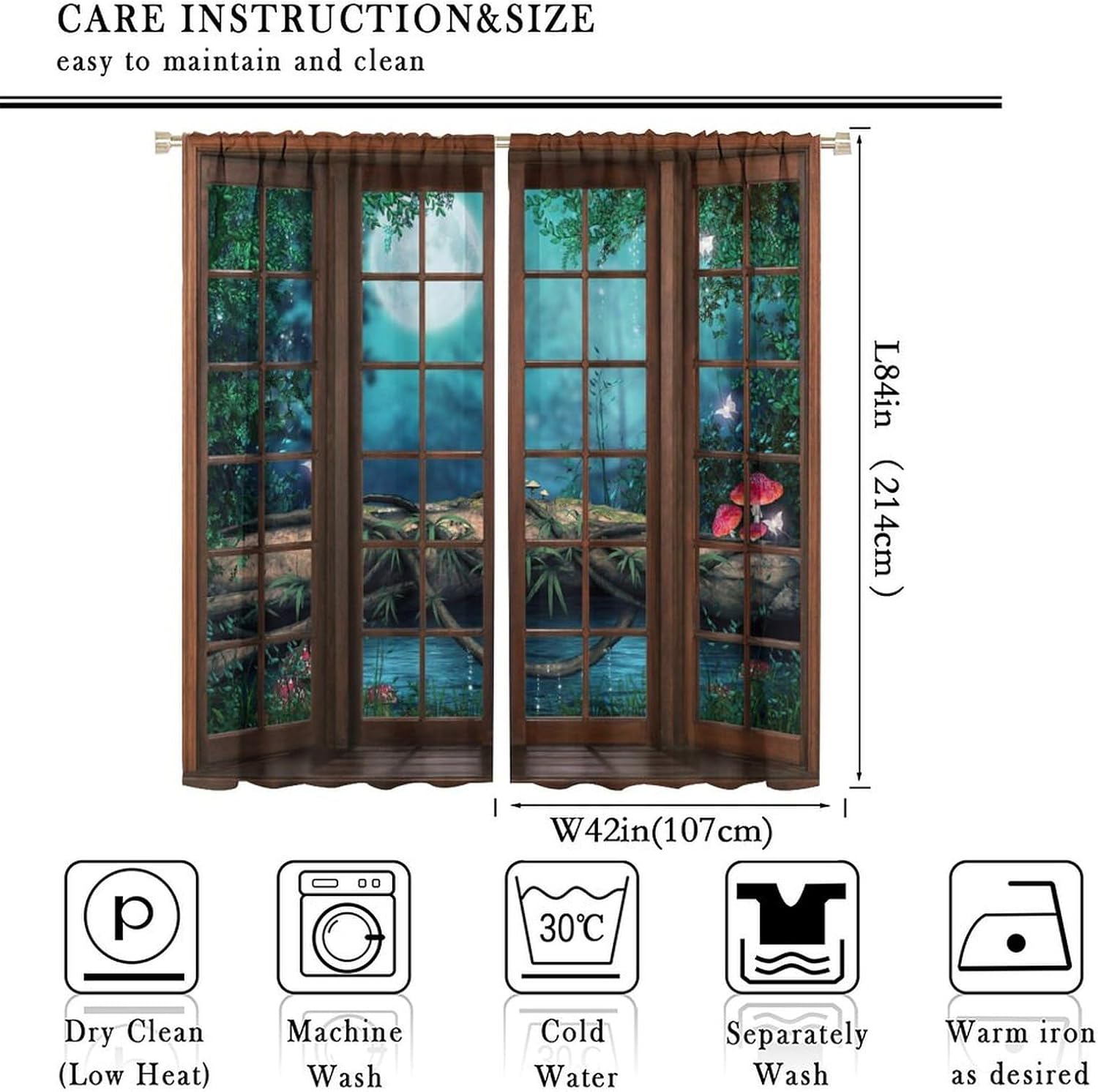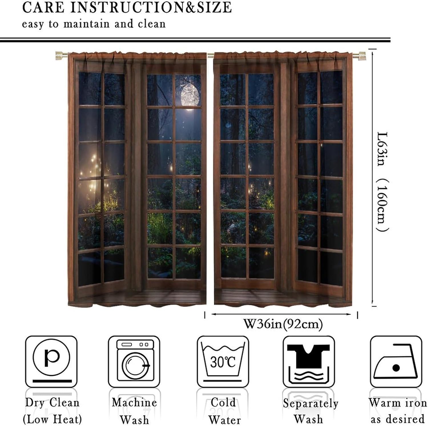 【About the function】:►It can block the light and darking the room, and it can also protect privacy. For those who are afraid of darkness, this is the best choice. ►These print curtains are perfect for Living room, bedroom, kids room, yard, patio, parlor, sliding door. 【Care Instructions】:►Crafted from 100% Polyester►Wash Separately►Machine washable►Tumble Dry on Low【Easy Care】:►You can throw the window curtains into the washer and dryer without worrying about the color fading or the need for ironing. The material is wrinkle-resistant making it a great choice for any room. 【Notice】:►Please allow 1 - 2cm (0.4" - 0.8") deviations due to manual measurement. ►Please do not wash it with other items or high heat dry by machine. 【Customer First】:► We focus on 100% customer satisfaction. If there is any problem with our curtains, you can reach us at any time.