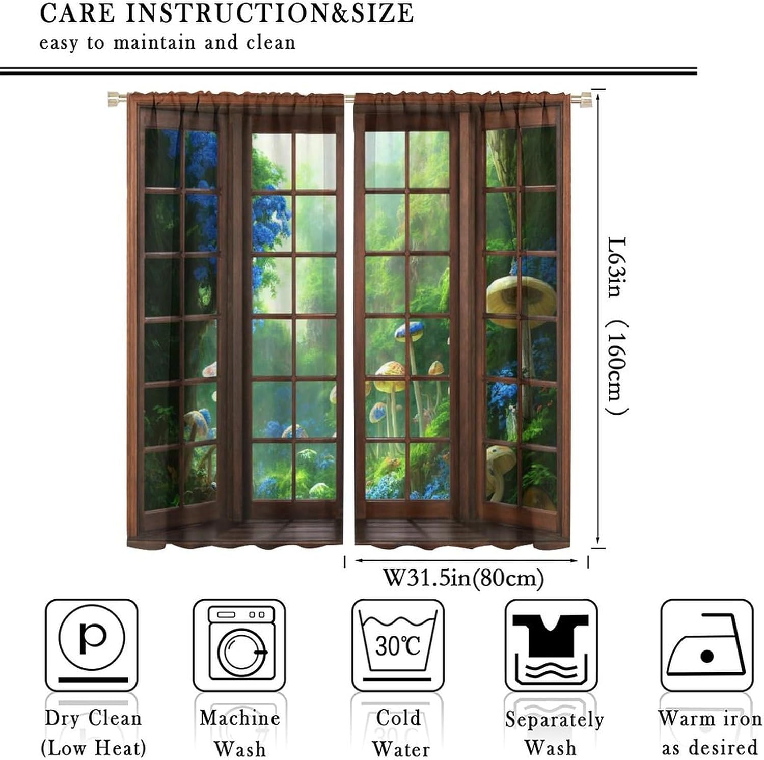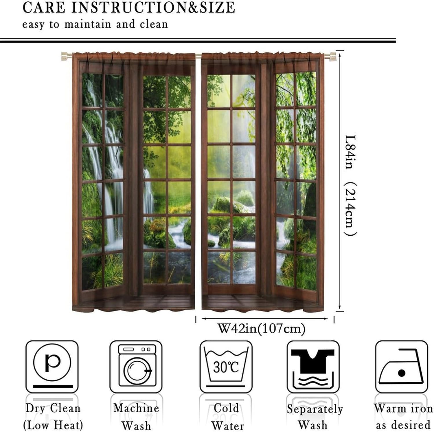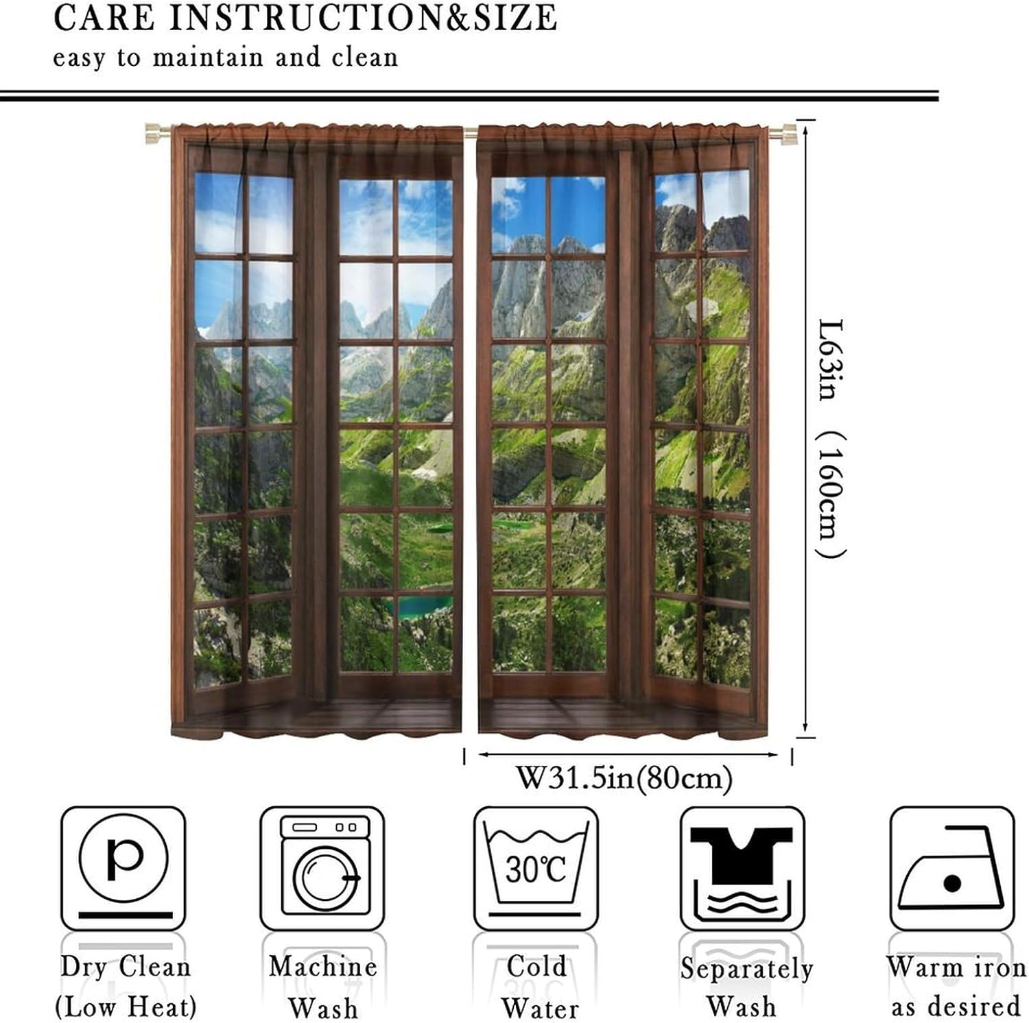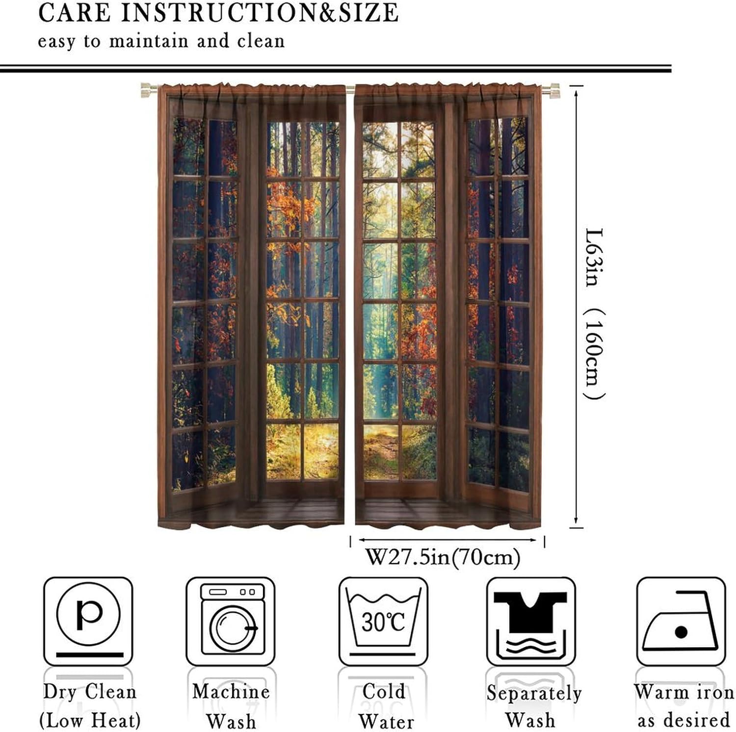 【About the function】:►It can block the light and darking the room, and it can also protect privacy. For those who are afraid of darkness, this is the best choice. ►These print curtains are perfect for Living room, bedroom, kids room, yard, patio, parlor, sliding door. 【Care Instructions】:►Crafted from 100% Polyester►Wash Separately►Machine washable►Tumble Dry on Low【Easy Care】:►You can throw the window curtains into the washer and dryer without worrying about the color fading or the need for ironing. The material is wrinkle-resistant making it a great choice for any room. 【Notice】:►Please allow 1 - 2cm (0.4" - 0.8") deviations due to manual measurement. ►Please do not wash it with other items or high heat dry by machine. 【Customer First】:► We focus on 100% customer satisfaction. If there is any problem with our curtains, you can reach us at any time.