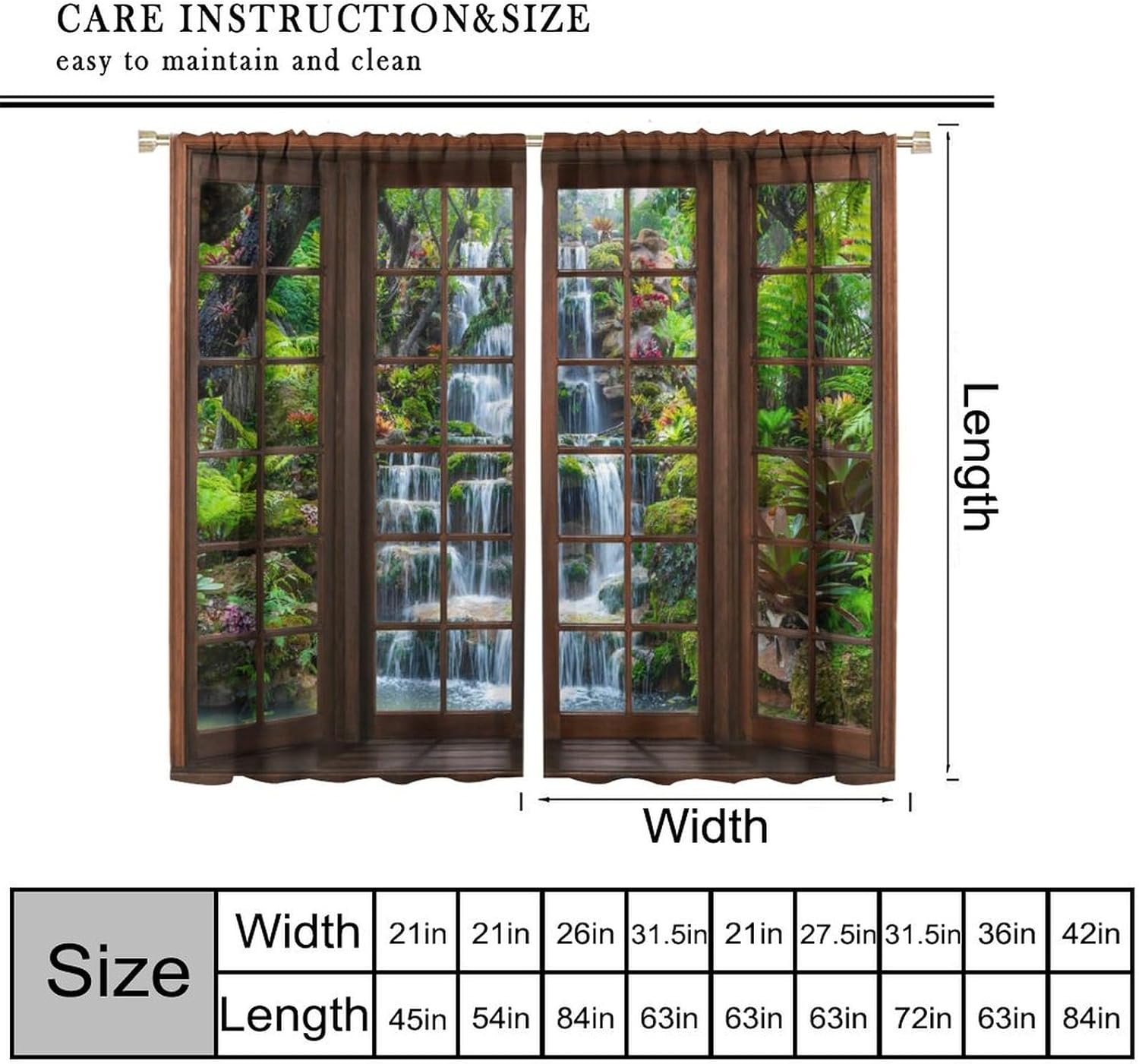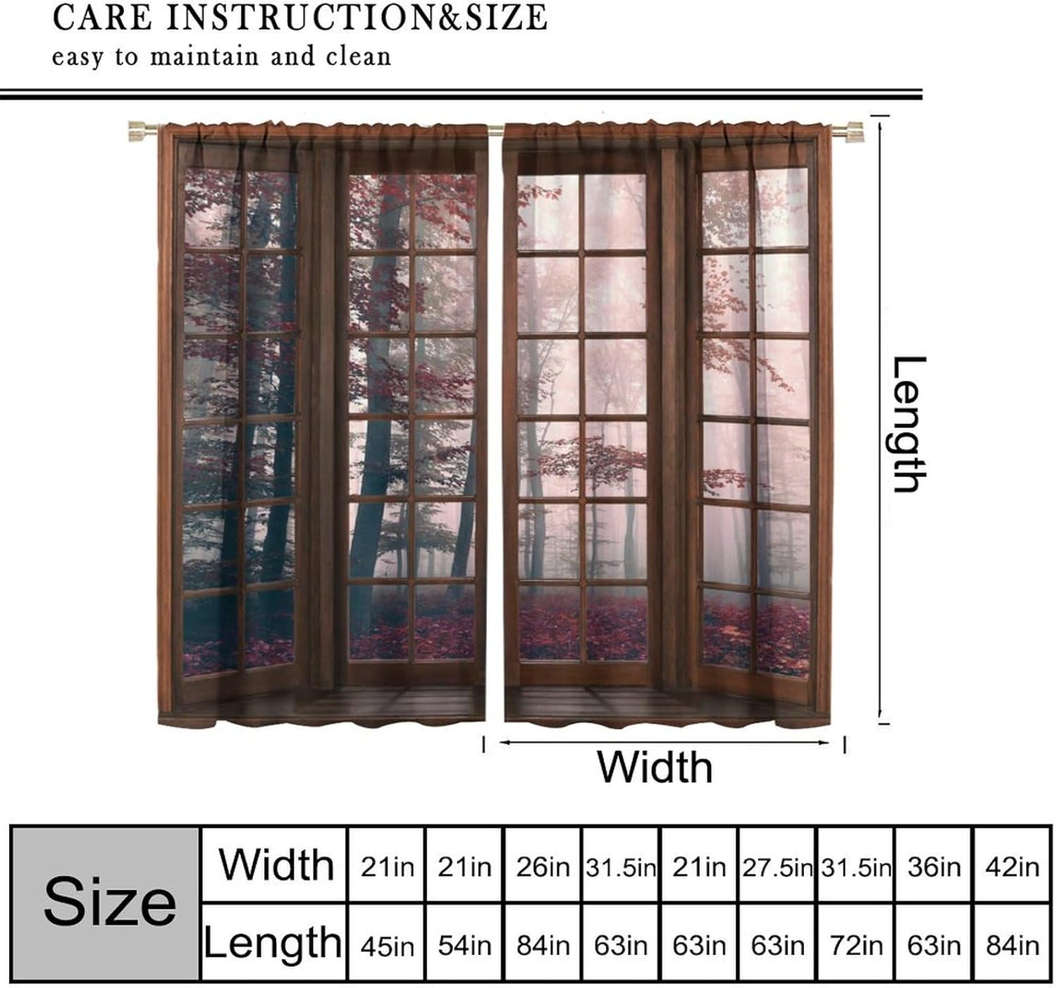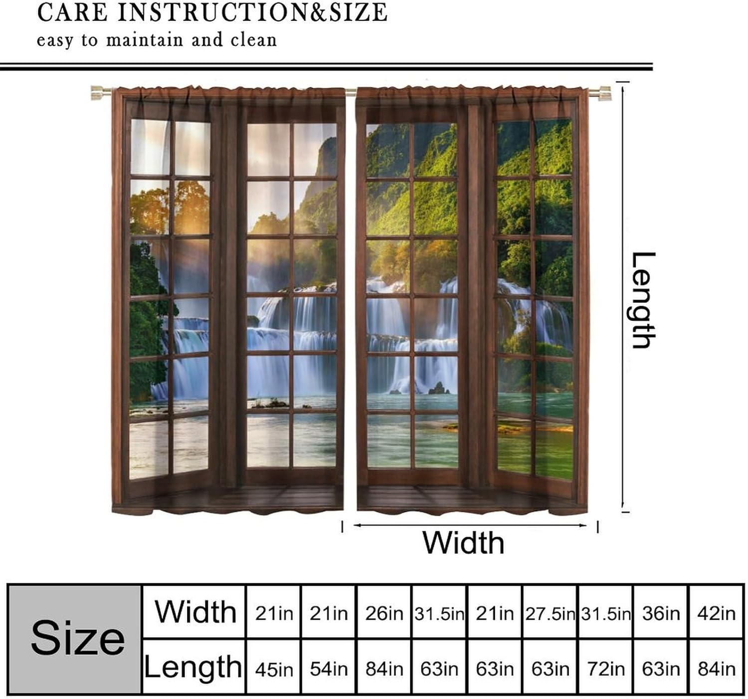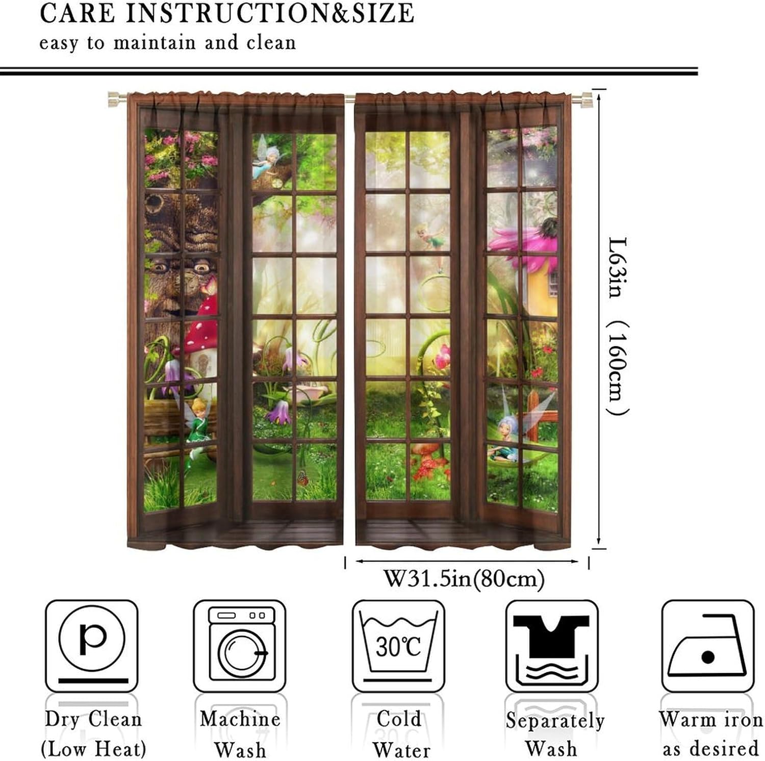 【About the function】:►It can block the light and darking the room, and it can also protect privacy. For those who are afraid of darkness, this is the best choice. ►These print curtains are perfect for Living room, bedroom, kids room, yard, patio, parlor, sliding door. 【Care Instructions】:►Crafted from 100% Polyester►Wash Separately►Machine washable►Tumble Dry on Low【Easy Care】:►You can throw the window curtains into the washer and dryer without worrying about the color fading or the need for ironing. The material is wrinkle-resistant making it a great choice for any room. 【Notice】:►Please allow 1 - 2cm (0.4" - 0.8") deviations due to manual measurement. ►Please do not wash it with other items or high heat dry by machine. 【Customer First】:► We focus on 100% customer satisfaction. If there is any problem with our curtains, you can reach us at any time.