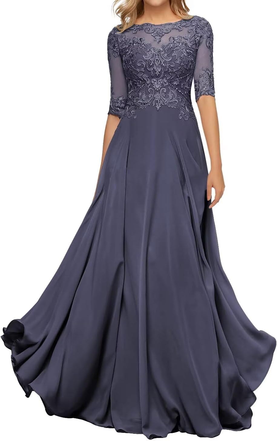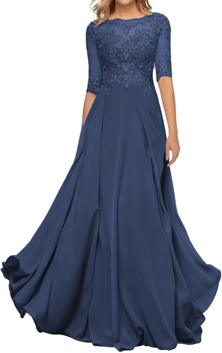 DescriptionFabric:high quality chiffonLength:floor length.Features:Laces Appliques, Mother of The Bride Dresses ,Short Sleeves ,Long Formal dresses,We designed invisible tulle on the upper body and shoulders to make you look more beautiful.This dress is elegant and beautiful,the quality chiffon dress perfect for formal wedding,club,dating,evening party,wedding receptions, evening party, ball gowns,ceremony, wedding guest, beach wedding, farm wedding,graduation ceremony, engagement, anniversary, holiday party, birthday party, etc