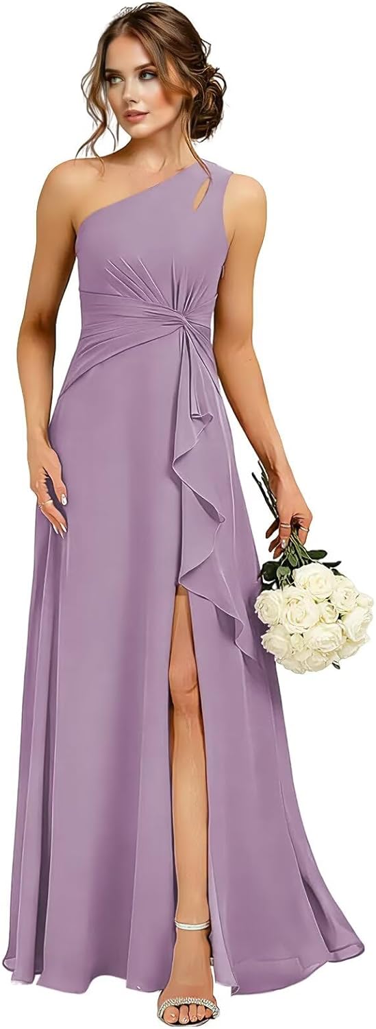 ➤ATTENTION:1.Please reference our SIZE CHART on the image. It is more accurate to use our size chart to choose your size. If you are between two sizes, please choose the larger size.2.Computer screen has chromatic aberration, especially between CRT screen and LCD screen, color difference can not be avoided, please understand.➤Item Description:➤Chiffon One Shoulder Bridesmaid Dresses for Women Long Pleated Formal DressMaterial:ChiffonFeatures: Ruffle/Pleated/CutoutApparel Silhouette:A LineNeckline:One ShoulderSleeve:SleevelessBack: Lace Up BackWaist:A LineDress Length: Floor Length➤Customized Services:If you want to custom the dress, please complete the format when you place the order.1. Full Bust _____ inch2. Waist _____ inch3. Hips _____ inch4. Hollow to hem ___ inch5. Natural height:_____inch6. High Heels_____inch7. The date you need the dress_____➤For the urgent order, please contact us before placing order to ensure you can get it on time.