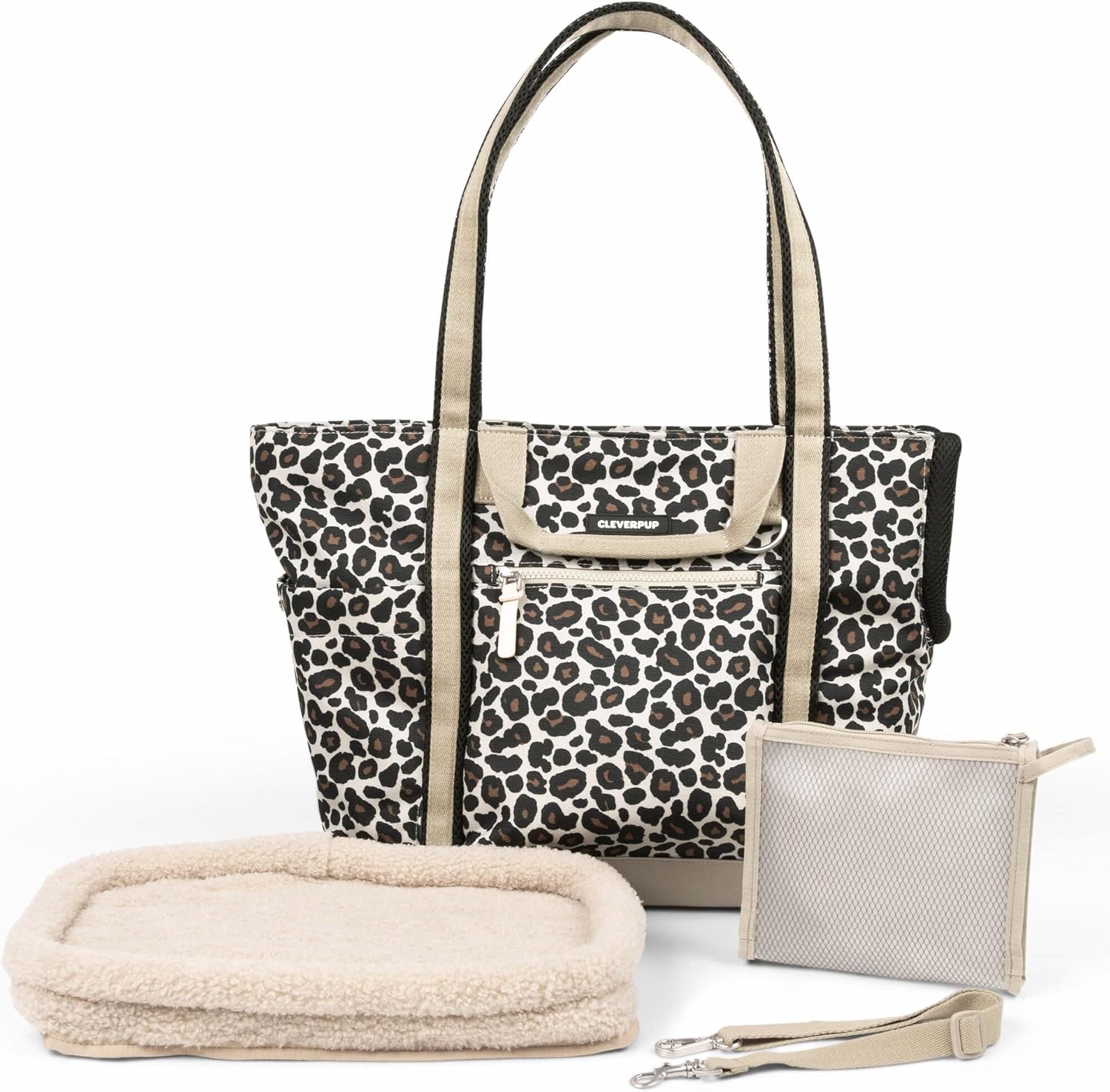The CLEVERPUP Transit & Treat Bundle includes a lightweight Transit Tote dog carrier and insulated Snackpack treat pouch for easy, organized outings. A plush interior keeps your pup comfortable, while smart pockets and quick-access treat storage make travel, training, and errands simple and stress-free. Stylish, durable, and designed for life on the go with your dog.