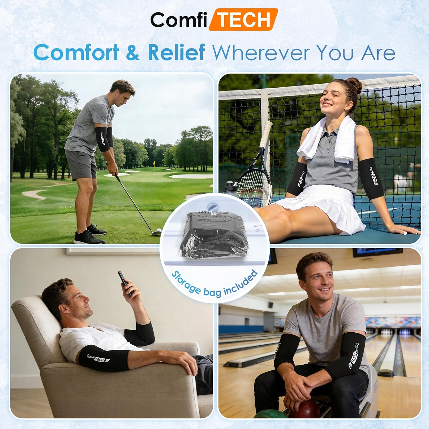 ComfiTECH Ice Pack for Elbow with Ice Bag, 2 Packs, Medium
