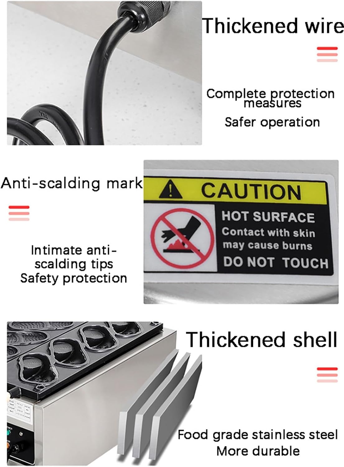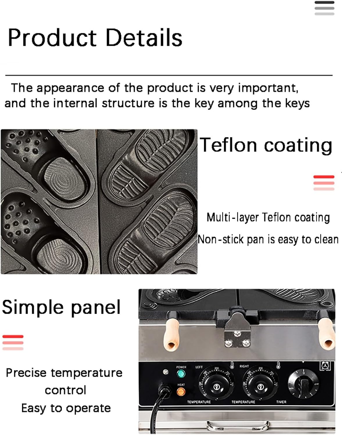 ✅【Basic Product Information】Material: Food-grade stainless steel + Teflon-coated aluminum platePower: 3000WVoltage: 110V/220VSize of heated single pancake plate: about 16.5×7.5 cm/6.5*2.95inTemperature control range: 0°C - 300°C (0°F - 572°F)Control panel: timer + thermostat + power indicatorSafety features: explosion-proof protection, anti-scalding warning, thickened power cord, insulated shellUse scenarios: commercial kitchens, restaurants, breakfast stalls, dining cars, home kitchensPackage includes: 1 electric baking tray, 1 user manual