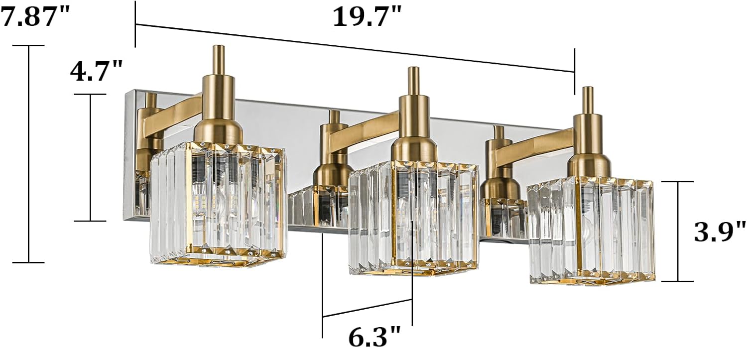 • 【MODERN ELEGANT DESINGN】Featuring a metal structure and high-quality crystal cover with special cutting, this gold chrome crystal vanity light fixtures will bring more exquisite and gorgeous to your home. Anti-corrosion and moisture-proof, strong, and long life