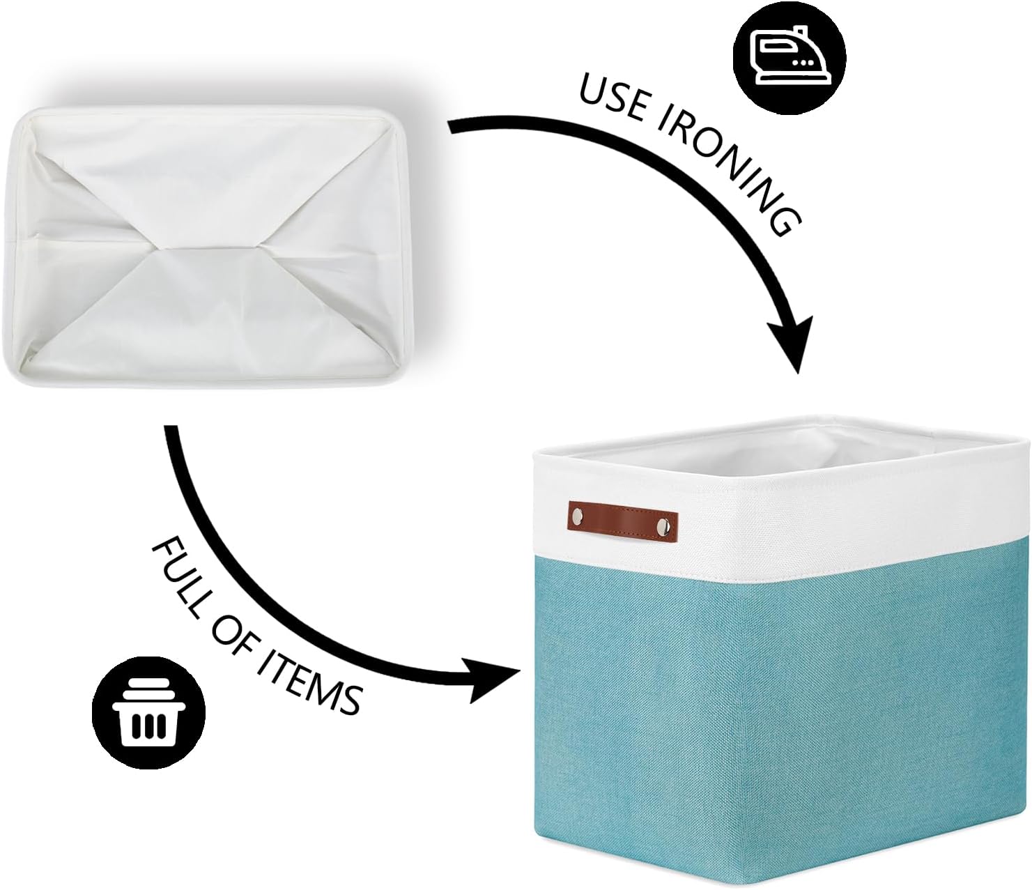 DULLEMELO Collapsible Bundle Baskets 2 Large Baskets 17"x12"x15" + 3 Medium Baskets 15"x11"x9.5"(White&Teal)