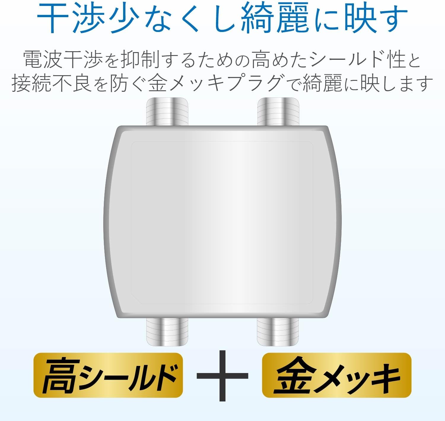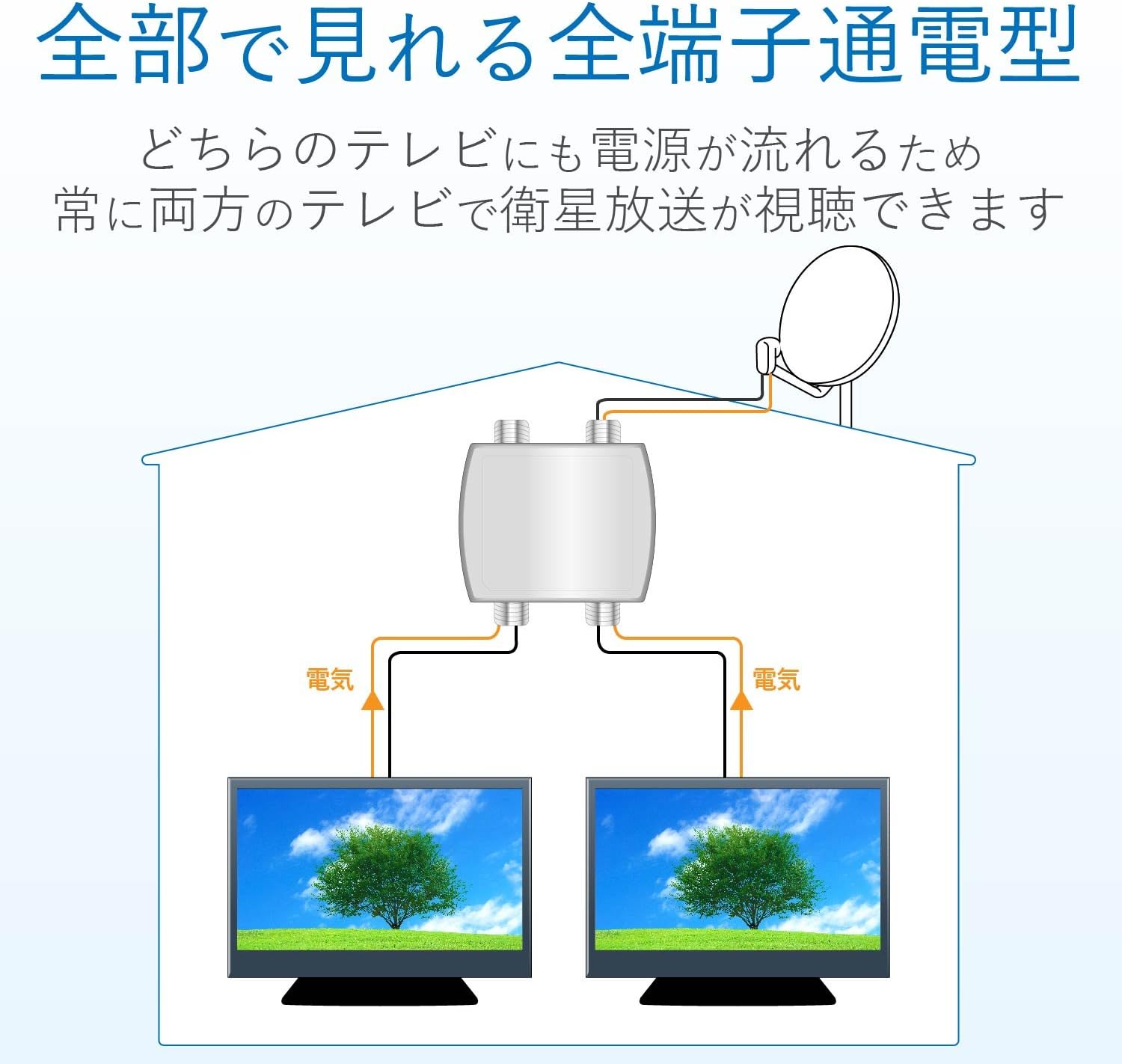 Specifications: ■ Frequency band: DC ~ 3224MHz 2K4K8K broadcast compatible ■ Specifications: Indoor 3 Splitter ■ Input and Output Terminal: F-type terminal ■ Power transmission function: All terminals are conductive ■ External dimensions: 2.2 x 1.9 x 0.9 inches (55 x 47 x ■ Weight: 0.075kg ■ Construction: Synthetic resin case, inner metal shield case 【Description】 ■ All terminal 3 splitter Divide TV radio waves into 3 pieces; Supports 2K4K8K (~3224MHz). It can also be used on traditional 2K broadcast TVs. ■ The plug is gold-plated and shielded construction. Prevents contact failure and eliminates external noise. Can also be used with cable TVs. ■ JEITA Super High Vision (SH) Mark Certified Product