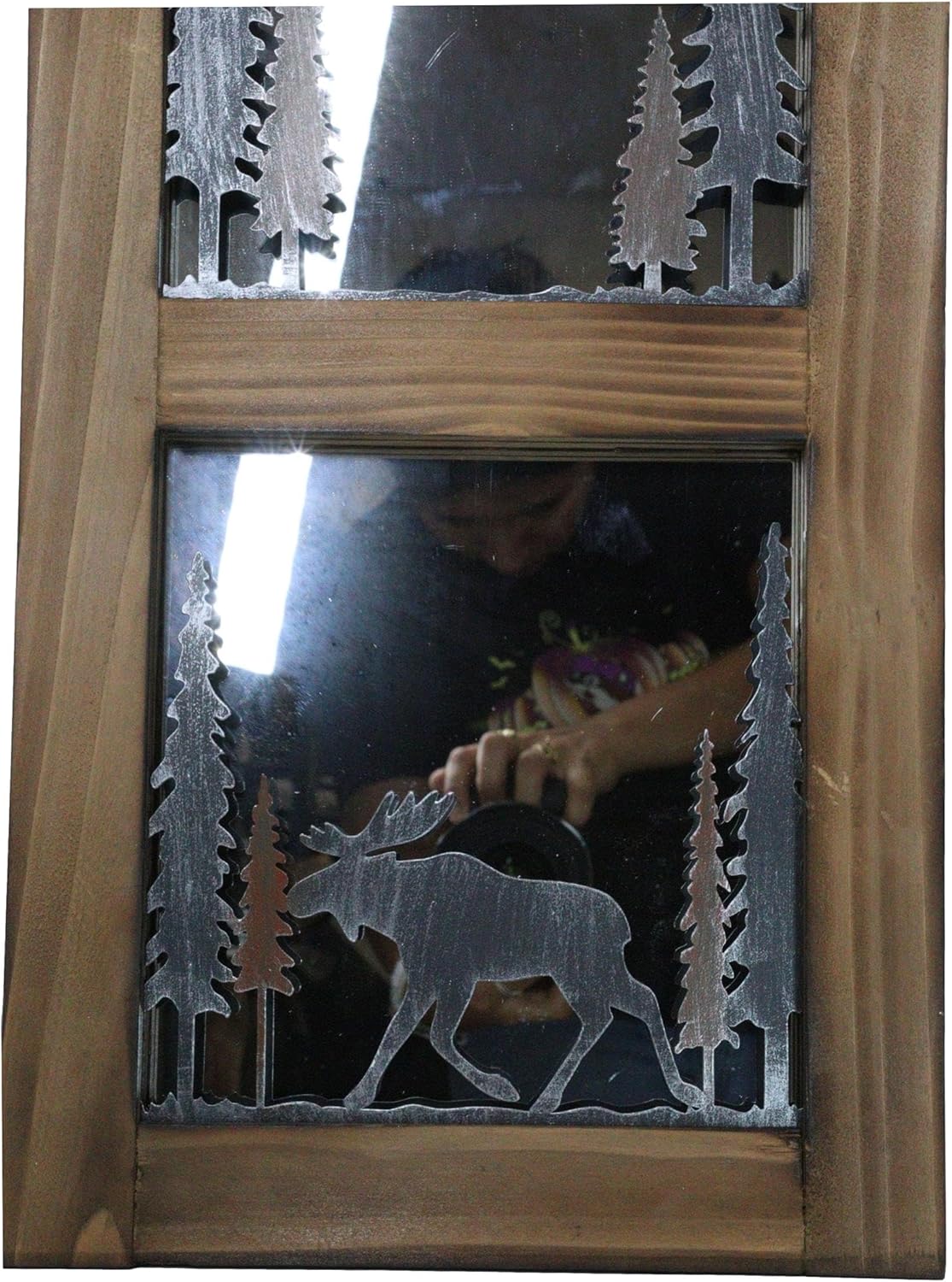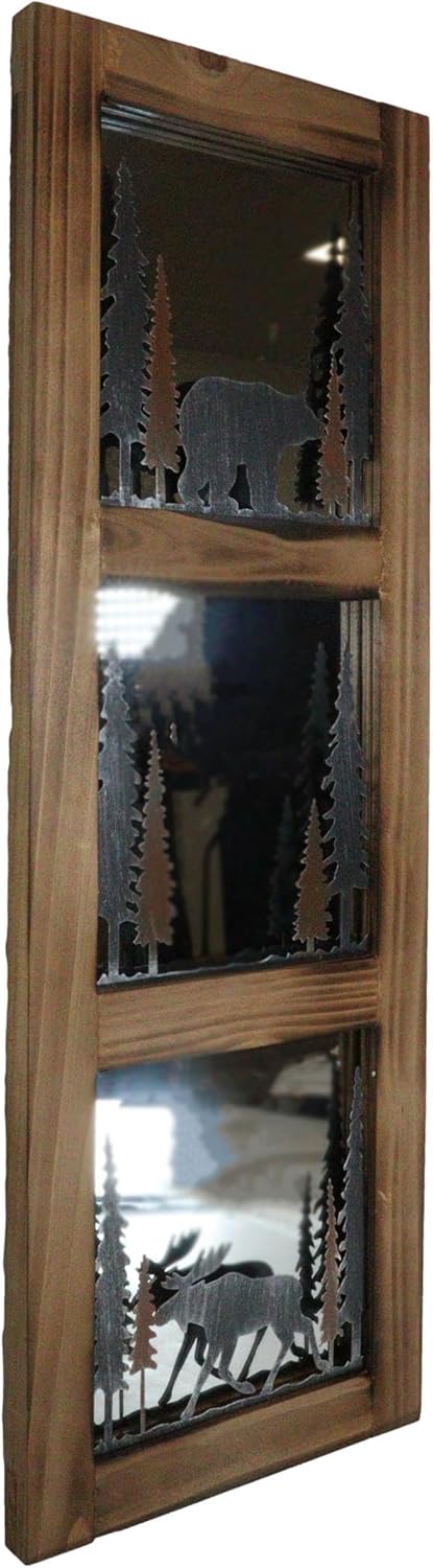 Transform your space with our Rustic Black Bear and Elk Moose Large Wall Mirror! This stunning piece features intricately carved depictions of a black bear and an elk moose, surrounded by beautifully crafted pine trees, bringing the essence of the great outdoors into your home. The triple-segmented design adds depth and character, making it a striking focal point in any room. Perfect for cabin-themed decor or nature lovers, this mirror combines functionality with artistic flair.