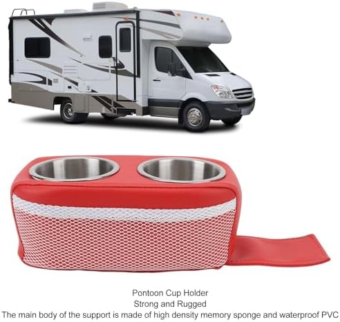 1. Long Lasting: Constructed from stainless steel, cup holder has a bracket made from high density memory sponge along with an anti ultraviolet waterproof PVC main body. This strong structure guarantees extended durability.2. Secure and Stable: The weighted PVC clamshell secures the drink holder to the seat by tucking the clamshell inside the between the seat and the cushion, it will stay in place and ensure the drink is safe.3. Moveable Structure: This pontoon double drink holder can be relocated as needed. It's ideal for pontoons and can be easily removed or stored away when not in use.4. Perfect Size: Double cup holders boast a diameter of 3.1 to 3.5 inches, accommodating most beverage containers, such as water bottles, beer cans, coffee mugs, and cups ranging from 10 to 40 oz.5. Multifunctional: The cup holder is perfect for pontoons, fishing boats, yachts, and motorhomes. It can serve as additional cup holders on a pontoon boat sofa, and even in the back of cars and motorhomes.Spec:Item Type: Pontoon Drink HolderMaterial: Stainless steel + sponge + faux leather + PVCDimensions: Approx. 270 x 155 x 110mm / 10.63 x 6.10 x 4.33inUsage: With double stainless steel cups, the sagging flaps are designed to stay firmly in place even in the roughest wavesApplication: Perfect for Pontoon Boats, Small Power Boats, Cruisers, and Fishing BoatsPackageList:1 x Pontoon Cup Holder (With 2 Stainless Steel Cup Holders)