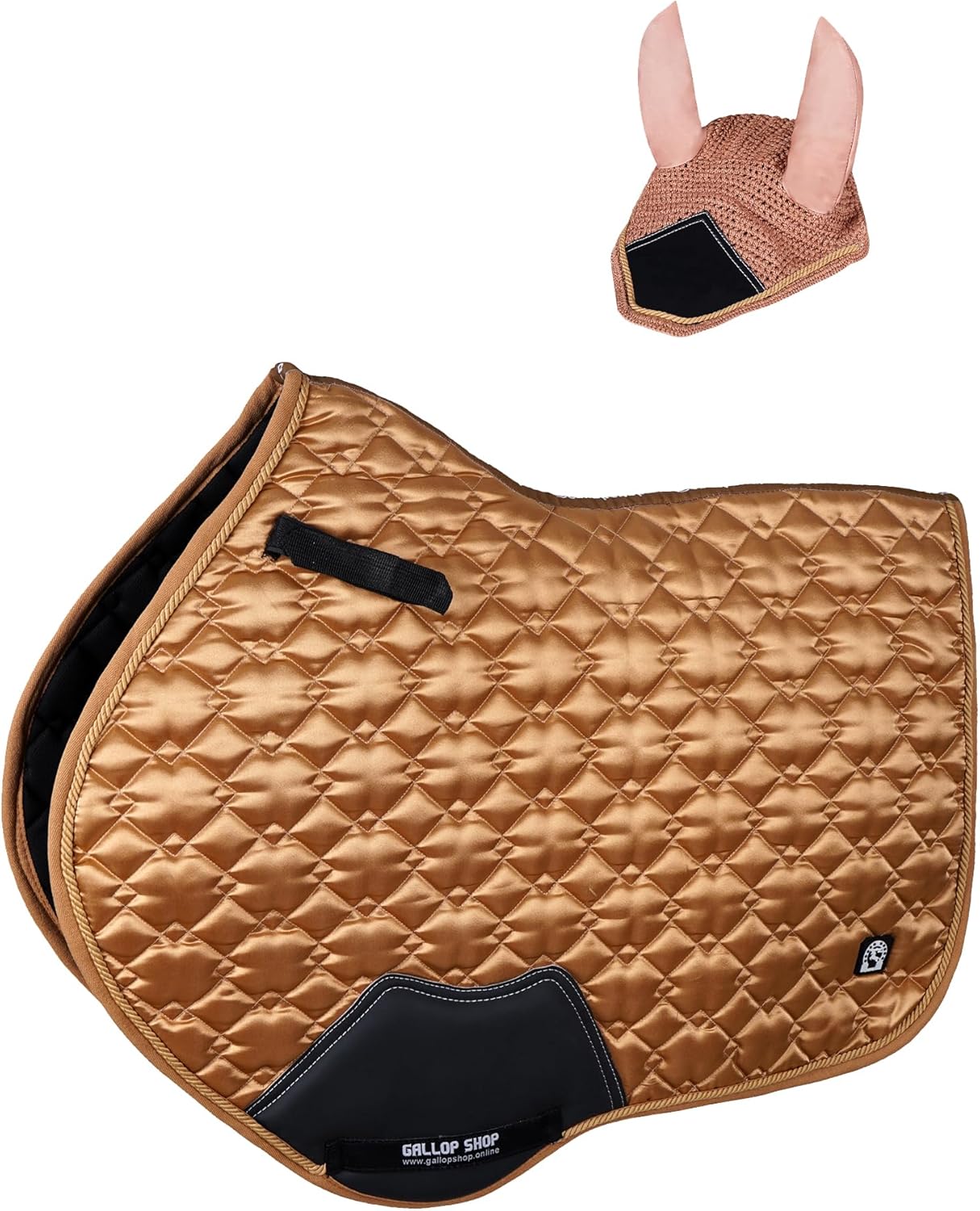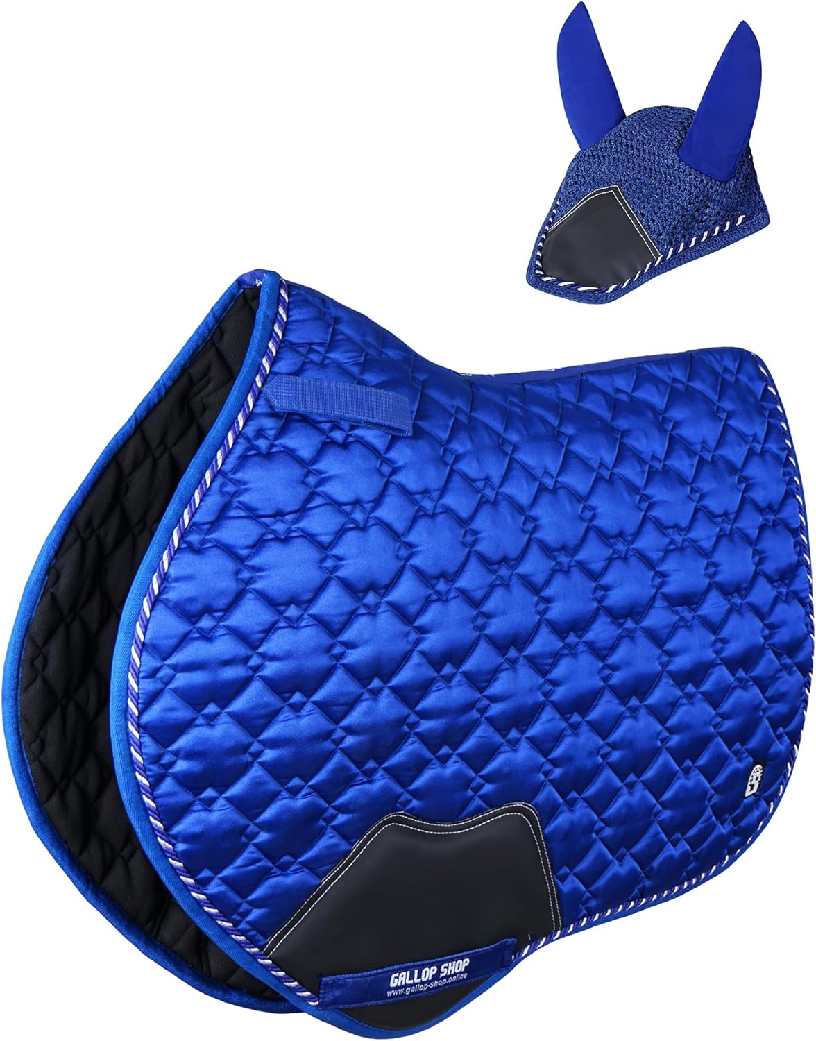Luxurious Satin Saddle Pad with Matching Bonnet Elevate Your Riding Style Indulge your horse in ultimate comfort with our luxurious satin saddle pad and matching bonnet set. Designed to enhance performance and style, this set offers: Luxurious Satin Exterior: A sleek, satin finish adds a touch of elegance to your equestrian look. Polyester and Foam Padding: Provides optimal shock absorption and pressure distribution, ensuring your horse's comfort. Breathable Mesh Lining: Allows for maximum airflow, keeping your horse cool and dry. Matching Bonnet: Completes the look and protects your horse's ears from insects and debris. Available in a range of stunning colors to match your style. Upgrade your riding experience today!
