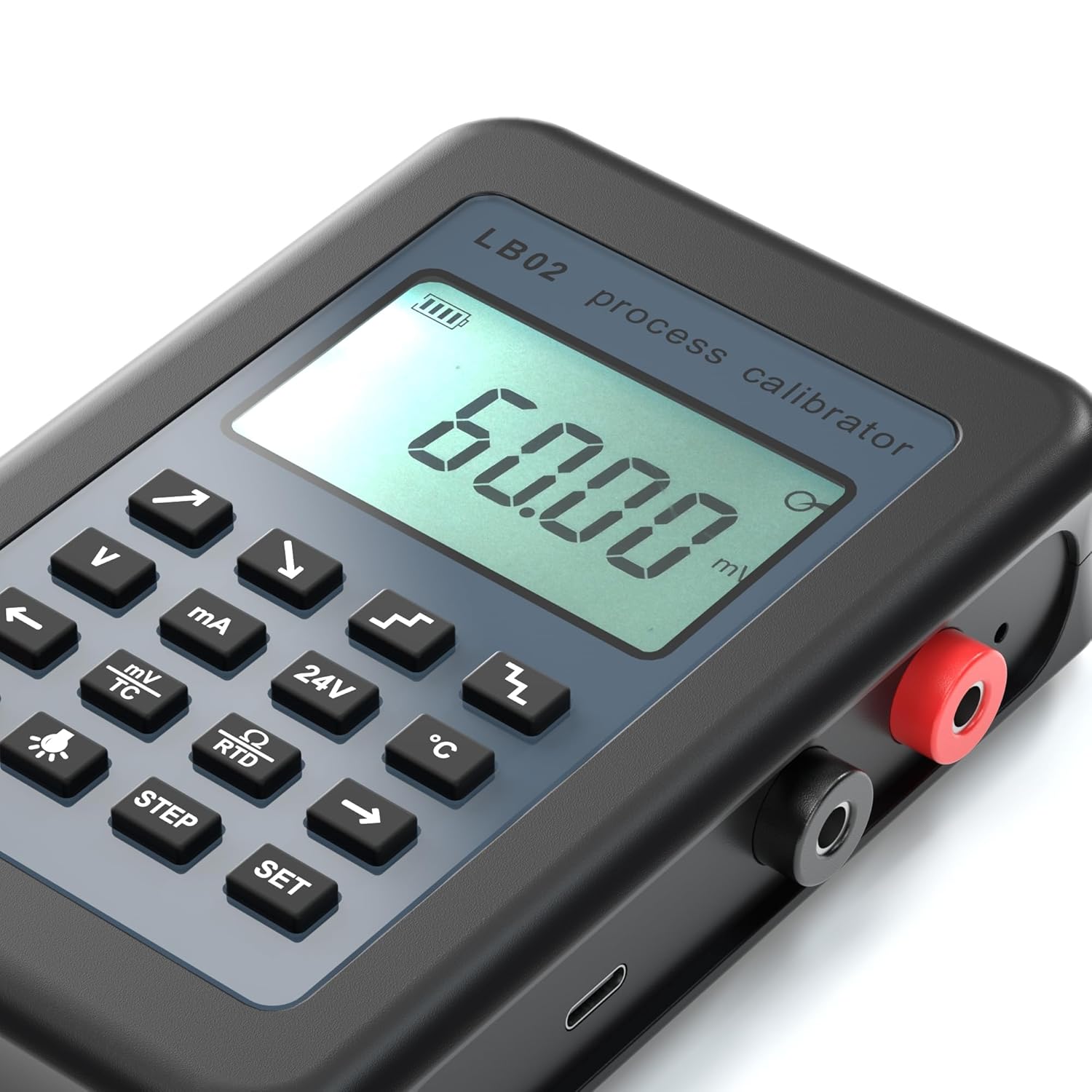 LB02 Resistance Current Voltmeter, 4-20mA/0-10V/mV Signal Generator Source Process Calibrator, Universal Signal Conditioner with LCD Display, 8 Signal Types for Engineering LabVersatile Signal Capabilities: LB02 signal calibrator supports inputs and outputs of current signal, voltage signal and mV; 8 different thermocouples signals (E, K, B, S, T, R, J, N); thermal resistance signals (Pt100, Cu50) with 14 input and 15 outputHigh-Precision Chips: Designed with advanced high-precision chips, 4-20mA signal generator source process calibrator delivers improved accuracy, suitable for both constant and non-constant external excitation currentsAdvanced Electronic Switch Design: Unlike conventional models that rely on mechanical switches, signal conditioner utilizes advanced internal electronic switches, enhancing durability and ensuring a longer lifespan, while minimizing maintenance concernsUser-Friendly Dual Connector Terminals: With 2 integrated connector terminals, LB02 source process calibrator allows for seamless use of any input or output terminal, preventing damage to your equipment and eliminating worries about misplaced leadsIntuitive Operation: Designed for simplicity, LB02 input output calibrator features responsive and dedicated buttons for V, mV, mA, and Ω inputs and outputs, allowing you to operate it without navigating complicated menusLCD Display: LB02 source process calibrator allows you to enjoy a large LCD display (49*29mm) that provides clear readings, similar to a multimeter or calculator, easy to interpret measurements at a glanceProtective Fuse: A built-in fast-acting one-time fuse protects the signal generator source process calibrator from damage caused by incorrect insertion of voltages above 110VLB source process calibrator covers most functions required for the maintenance of PLCs, DCS, ESD, field instruments, control valves, and frequency converters, offering high accuracy and long-term stability for reliable performance in industrial and lab settingsPACKAGE1 x LB02 Source Process Calibrator1 x Pair of Test Pen1 x USB Cable1 x Storage Case1 x Manual