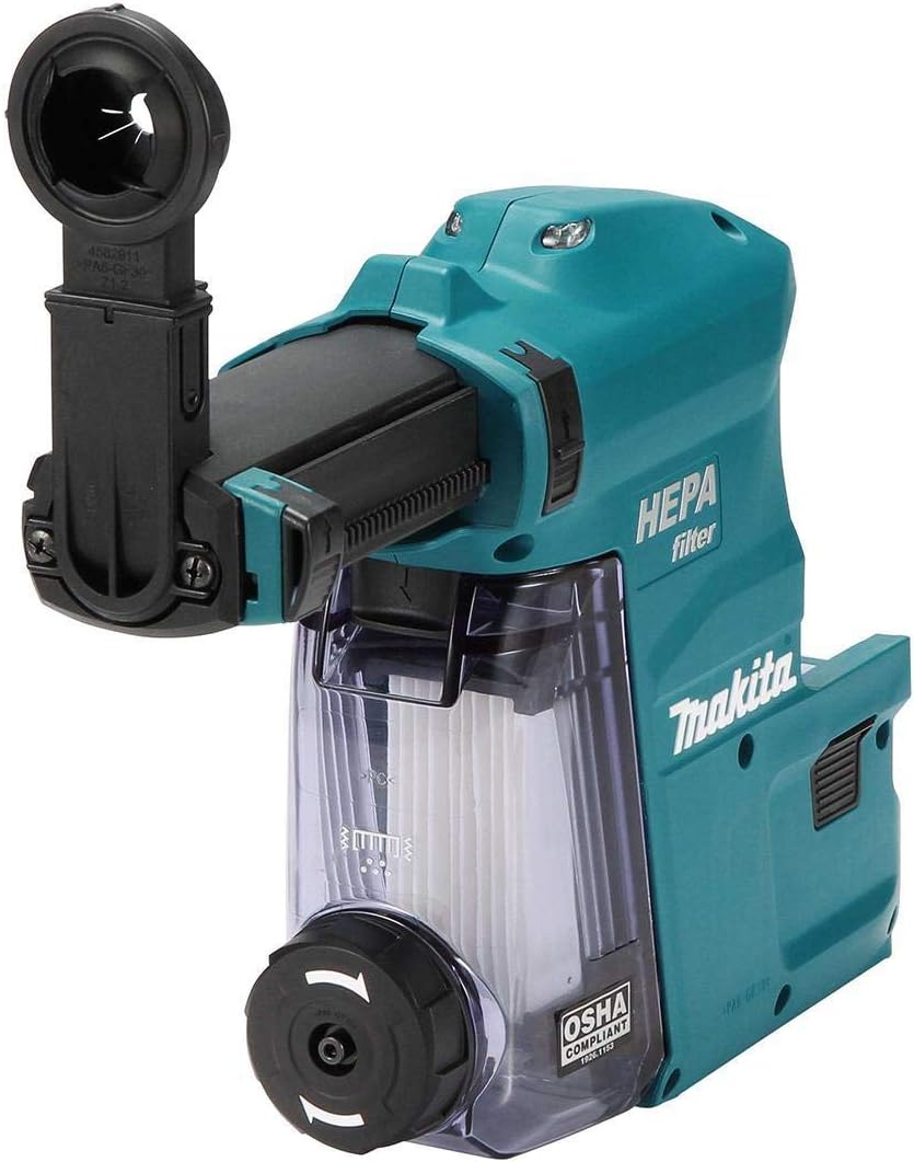 The dust extractor attachment with HEPA filter (model DX08) is for use with the 18V LXT® Lithium-Ion cordless Brushless 1" Rotary hammer (xrh08, sold separately). the DX08 dust Collection vacuum attachment features a HEPA filter engineered to capture 99.97% of dust particles (size .3 microns and larger) for improved dust Collection and OSHA Table 1 compliance. The dust extractor attachment is powered by a separate motor allowing the rotary hammer to consistently maintain peak drilling performance. The high-capacity dust container is transparent and provides an accurate level indicator of collected material. The container captures concrete Dust during drilling; activated by the tool and provides a 3-second delay to help capture remaining dust. With a quick release, The dust container can be easily detached from the dust Collection attachment when needed.