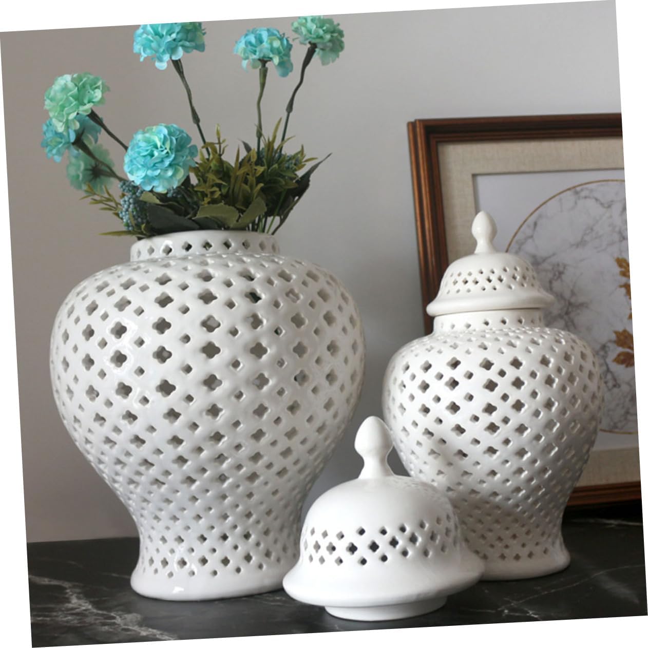 Package List 1 x hollow out jar Characteristics -Size: 21.00X12.00X12.00cm/8.25X4.72X4.72in vase -Material:Ceramic ginger jar -Color:White jars decorative - Hollow-out jar is made of ceramic materials, which is light and , not easy to break vases for decor. - Ceramic Hollow jar also can be used as plants planter in your garden, for gardening use flower vase. - Vintage hollow vase, is for porch, front door hollow vase balcony decoration vase decor. - Small and lightweight, this ceramic flower Vase can be moved easily and conveniently ceramic ginger jar. - The hollow vase is widely used as wedding party hollow vase, elegant and full of romantic breath vase ginger jar.Goods Informationvase decor Your home will be an attractive focal point, especially if you add flowers to them.ceramic ginger jar This hollow flower arrangement is made of ceramic material.ginger jar flower vase The special flower Vase is the suitable shape and size to create an eye-catching vibrant display of color and also look to place them in house or garden, balcony