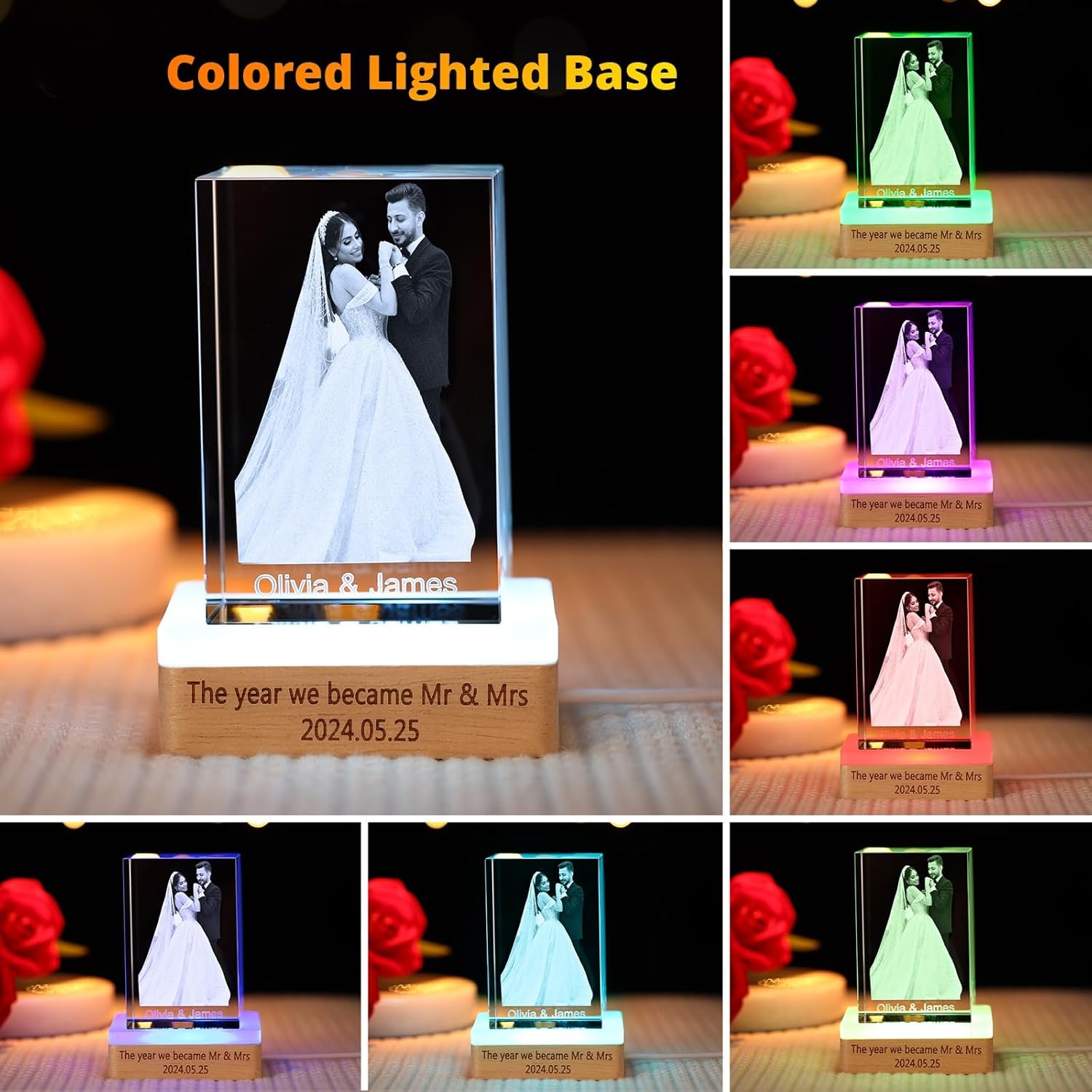 Turn cherished photos into stunning 3D art with our exquisite personalized 3D crystal cubes. You can also have the text you want to customize engraved on the exquisite 3D photo crystal cube or LED light base! Ideal for weddings, anniversaries, birthdays, and any special event!