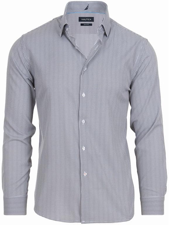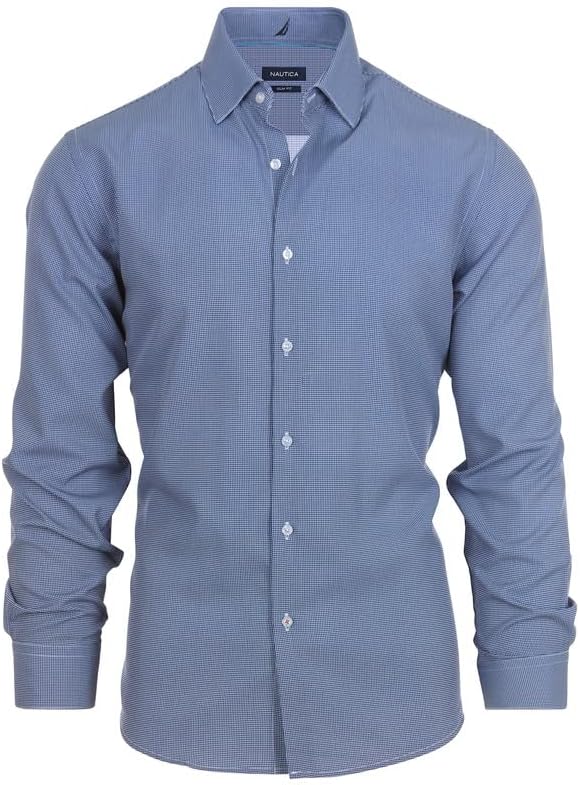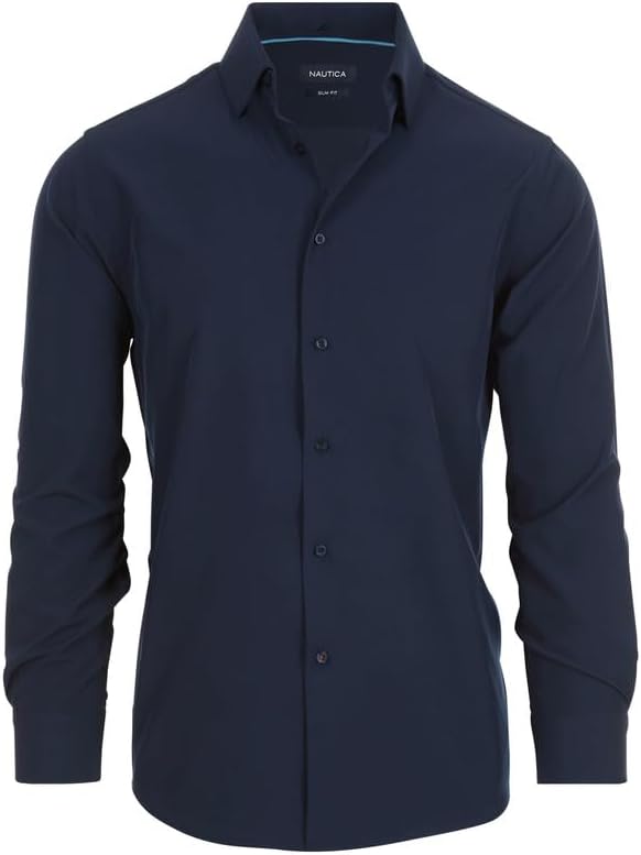 Elevate your style with this Nautica men's dress shirt, a versatile addition to any wardrobe. This button down long sleeve dress shirt features a sleek slim fit and is made from wrinkle-resistant fabric, ensuring you look sharp and professional all day, whether at work, an interview, or a formal event. Designed for comfort and ease, the breathable fabric offers all-day wearability, while the shirt remains machine washable for hassle-free care. Available in various sizes, this Nautica shirt is perfect for men of all sizes looking for a comfortable yet stylish option. Whether you're opting for a classic solid color, plaid, or striped pattern, this shirt pairs effortlessly with slacks or jeans. Perfect for work, business meetings, or casual outings, it’s an essential addition to any wardrobe and a great gift idea for Father's Day, Christmas, or special occasions. Size Guide: Small (S): Neck Size 14-14.5 -- Sleeve Length 32-33 Medium (M): Neck Size 15-15.5 -- Sleeve Length 32-33 Medium Tall (MT): Neck Size 15-15.5 -- Sleeve Length 34-35 Large (L): Neck Size 16-16.5 -- Sleeve Length 32-33 Large Tall (LT): Neck Size 16-16.5 -- Sleeve Length 34-35 Extra Large (XL): Neck Size 17-17.5 -- Sleeve Length 34-35