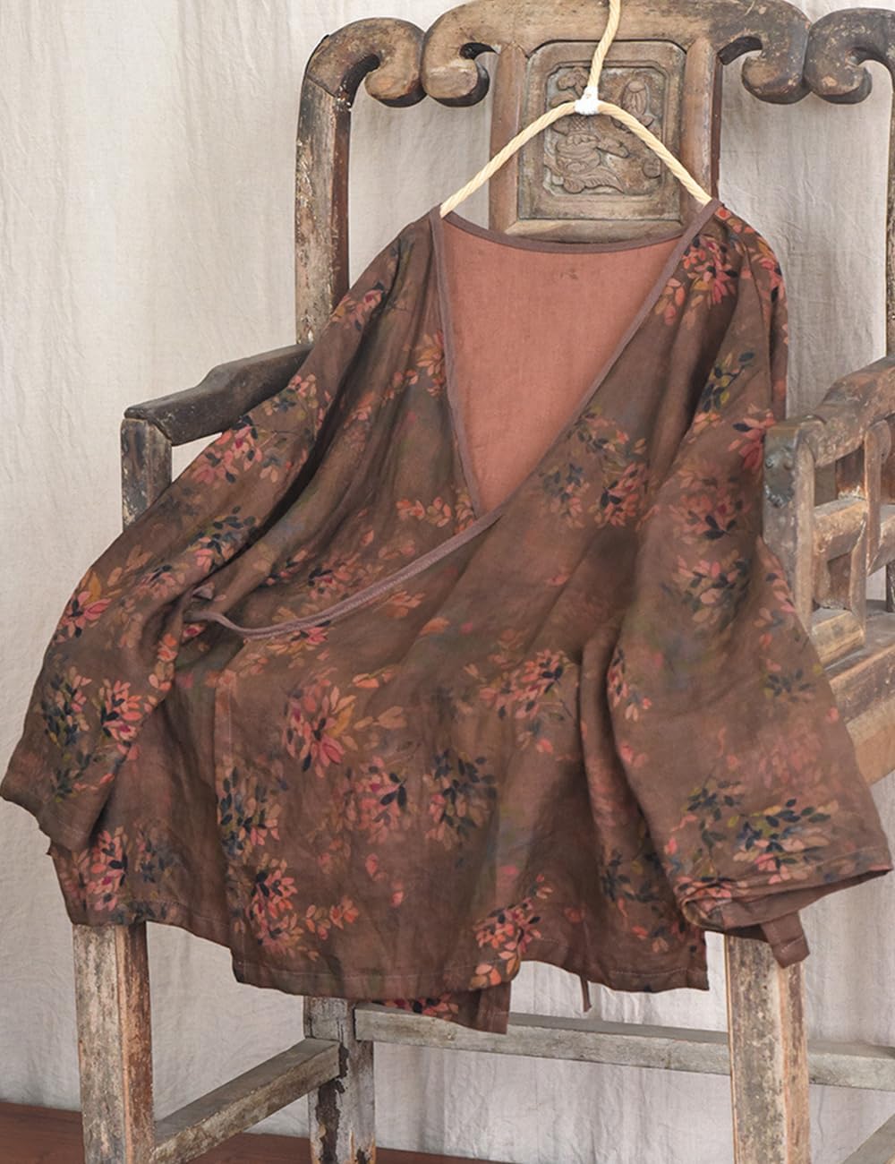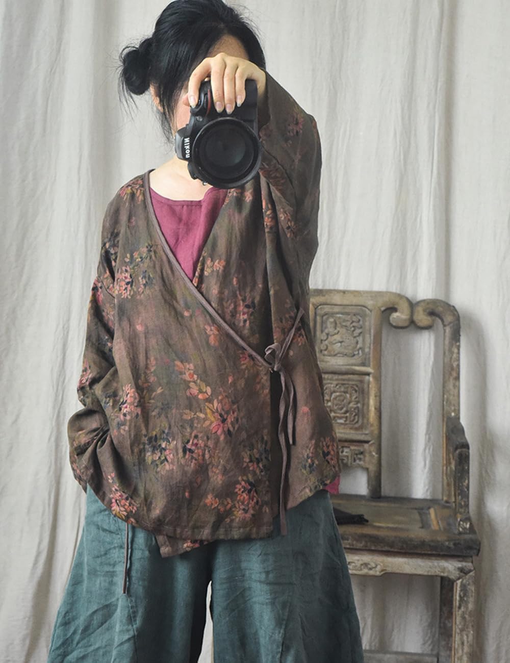 Women's Kimono Cardigan Long Sleeve Wrap Front Printed Linen Hanten Hanfu Style Short Shirt TopsColor difference:We strive to make our colors as accurate as possible; however, due to individual monitor settings, we cannot guarantee that the color you see on your screen is the exact color of the product. Size difference: This size information is just for reference only, and allow 1-2cm (0.4-0.8") differences due to manual measurement. Wash Recommended With Cold Water/Do Not Bleach/Hang Or Line Dry/Wash with like colours,that will increase the durability of your clothes.