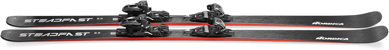 The Nordica Steadfast 80 CA FDT All-Mountain Skis are designed to deliver a versatile and thrilling experience on a variety of terrain, making them an ideal choice for intermediate to advanced skiers. With a focus on carving precision, responsiveness, and durability, these all-mountain skis offer outstanding performance for those who want to explore everything the mountain has to offer. FACTORY SKI ANGLE: - Base Angle: 0.9 degree: This subtle base bevel is pre-tuned to offer a balance between easy turn initiation and strong edge engagement, reducing the risk of catching edges while enhancing glide. - Side Angle: 87.5 degree: A performance-oriented side angle provides precise edge hold, making the ski responsive and powerful during aggressive carving. Whether you're skiing groomers with friends, grinning through the trees and bumps, or seeking out soft snow, Nordica’s Steadfast 80 CA loves to embrace the entire mountain. It features a full wood core. This creates a smooth and agile ride that boosts your confidence and elevates your performance. Thanks to an all-mountain shape and a blend of rocker and camber, the Steadfast 80 CA makes turning especially easy while also excelling at sliding more relaxed turns.