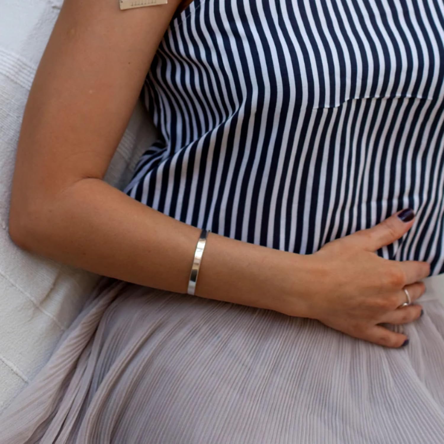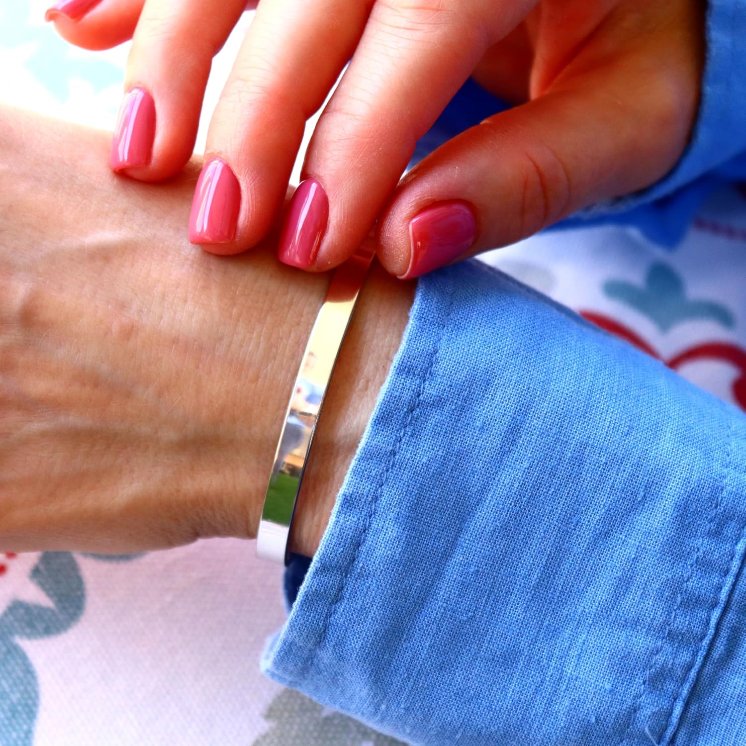 Elegant silver bangle bracelet to make an unforgettable gift! The bangle is polished to a shiny finish to create a fine background for engraving. I can engrave names or a quote outside and a secret message inside! Certainly the best gift for birthday or wedding! Size:Width 1/5 inch (6mm) Circumference 6 inch (Europe Size - 15 cm )Size is adjustable: You can bend the cuff a little to open and close it on your wrist and it will stay in the shape you need.