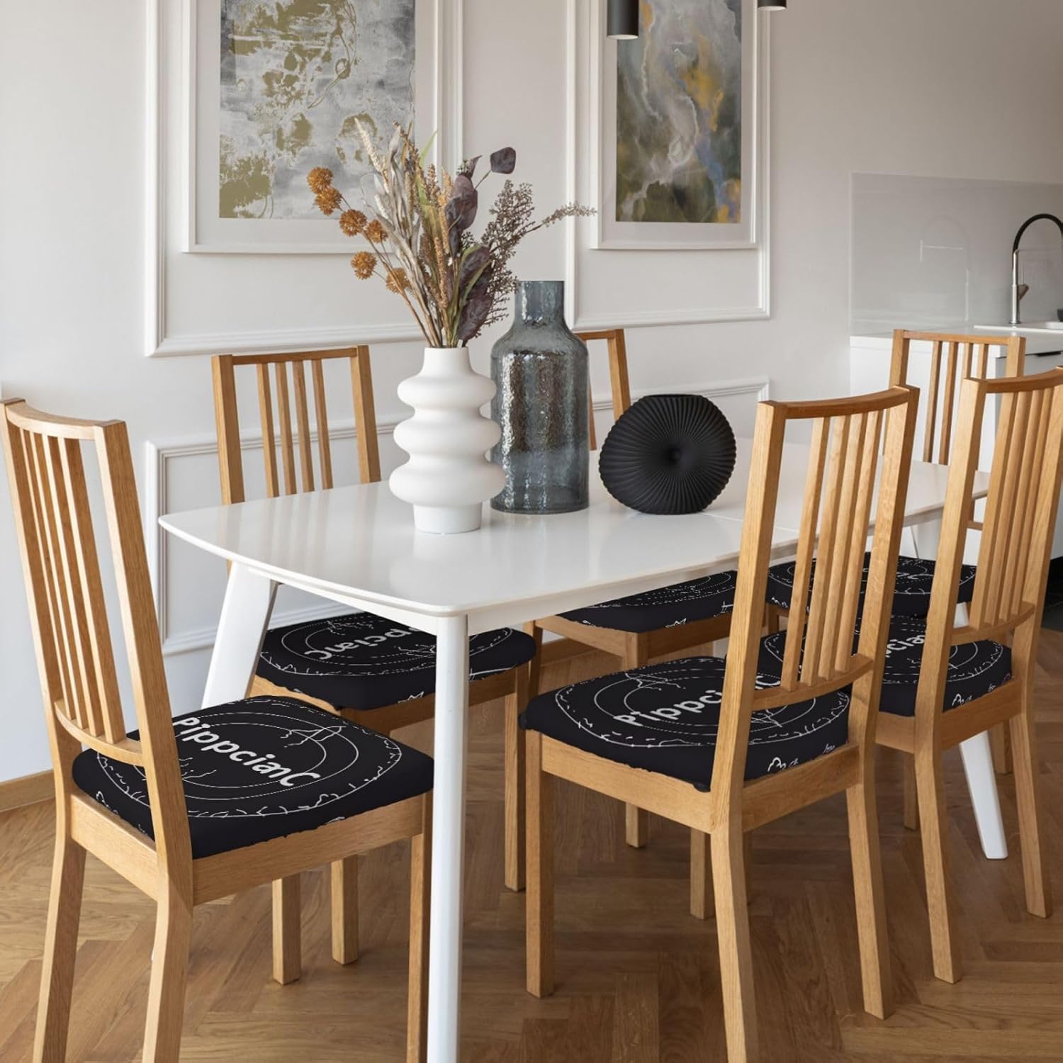 Our 6 Pcs set of square chair cushion covers are a wonderful addition to any seating area. Made of milk silk (94% polyester and 6% spandex), they offer a great combination of elasticity and comfort. With the unique design of elastic bands and 4 tie - straps (approx. 40cm each), these covers can be quickly installed on square chairs with sizes ranging from length and width of 35 - 48cm and thickness of 2.5 - 6cm. They are perfect for protecting your chairs from kids' doodles and pets' damage while enhancing the overall look of old chairs. These cushion covers can be used in various places such as offices, homes, cars, and wheelchairs, as well as for events like hotel functions, weddings, dinners, conferences, and family celebrations. What's more, they are easy to clean either by hand or gentle machine wash, ensuring they stay fresh all year round. They are also an ideal gift for your loved and colleagues.