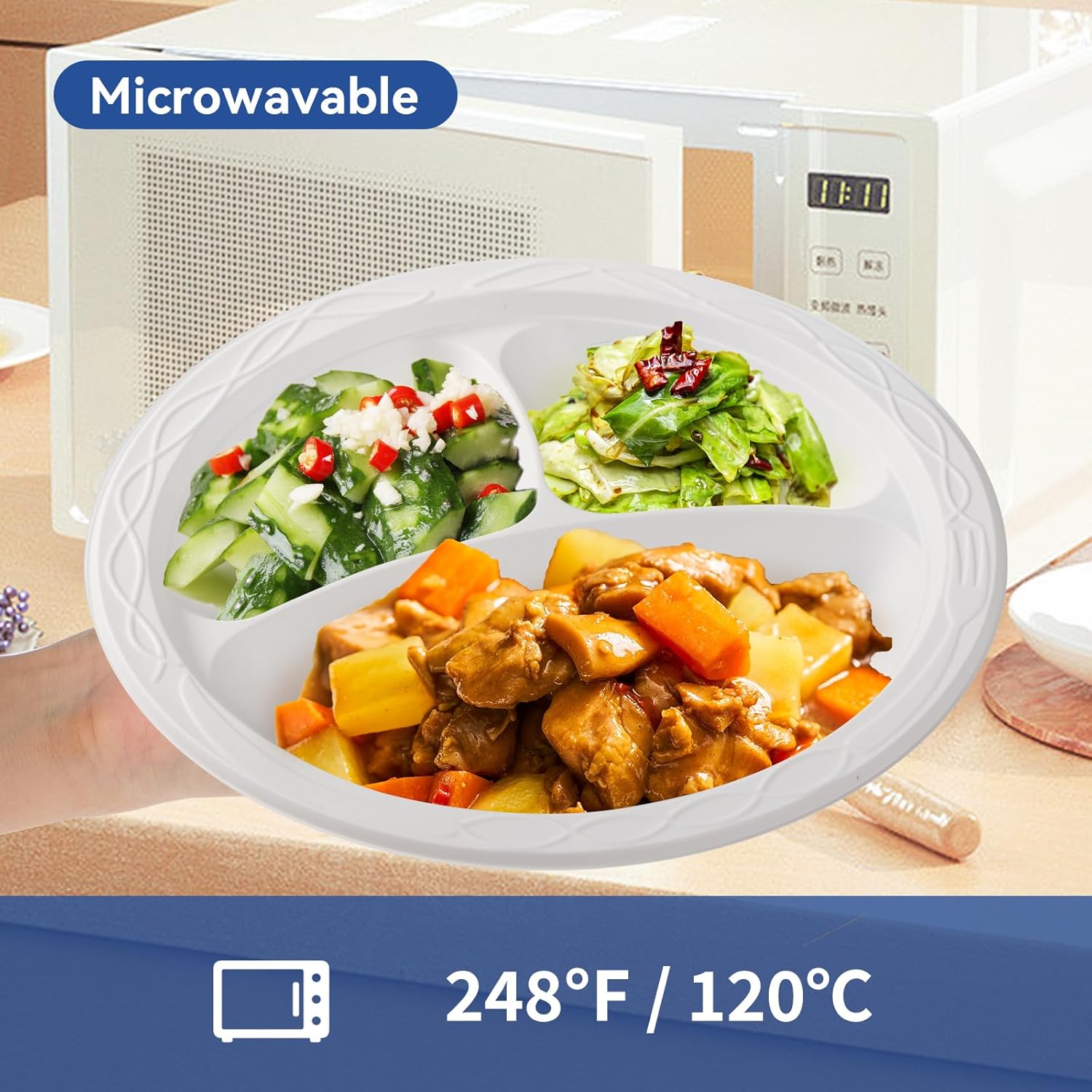 | Color | 3 section 10 inch White togo plate |