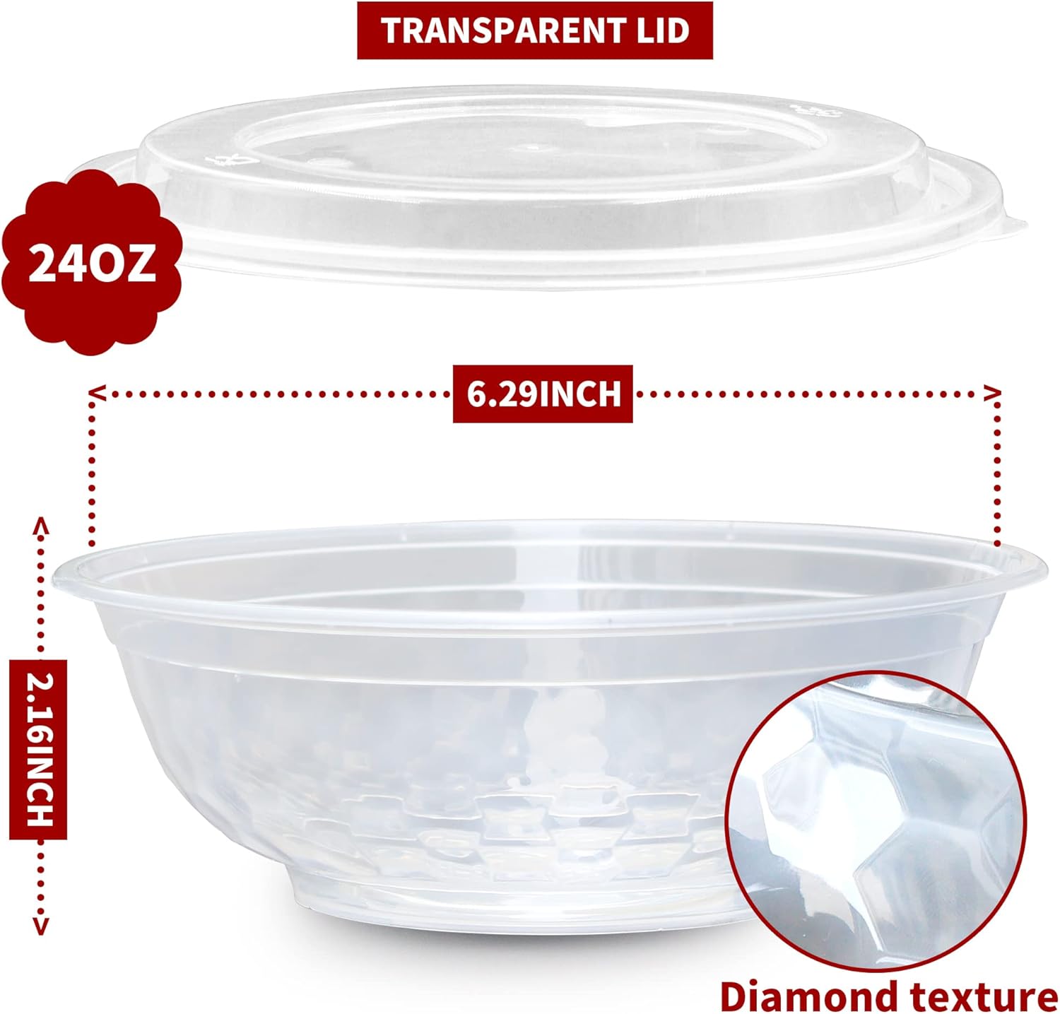 • 【VALUE PACK】This pack comes with 150 pcs disposable bowls with lids. Value enough to use every day and save you money! Each party serving bowls holds 24 oz. Measures approximately 2.16" top diameter x 6.29" high.