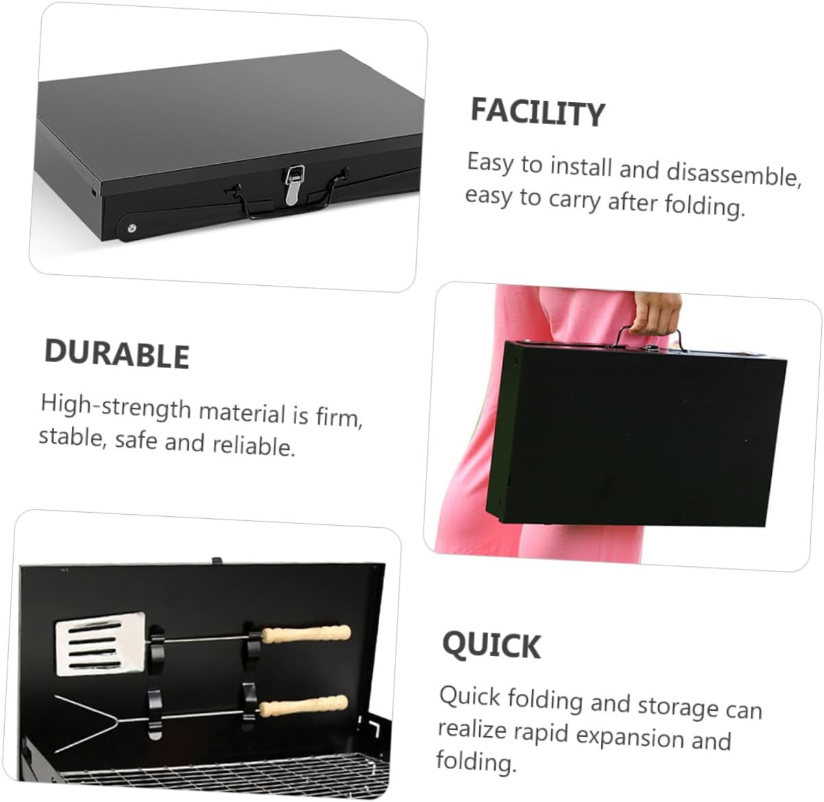 Package List 1 x set of BBQ grill Features - Material: Iron. -Product Info:Portable barbecue stove - Color: Black. - Size: About 44.00X27.00X47.00cm/17.29X10.61X18.47inch. - The joint foot design is more stable stove grill. - The lock is designed to prevent slipping outdoor cooking stove. - It's portable and , very convenient to carry grill portable. - The vent is designed to burn more fully grill accessory. - The baffle can be erected and has a windshield effect picnic barbecue stove.Goods Informationcamping stove accessory It is one of the for you.camping equipment Are you looking for a convenient barbecue grill stove? Are you in search of a sturdy, trustworthy that can do multiple jobs at once? , ! Our professional barbecue grill stove must meet you needs
