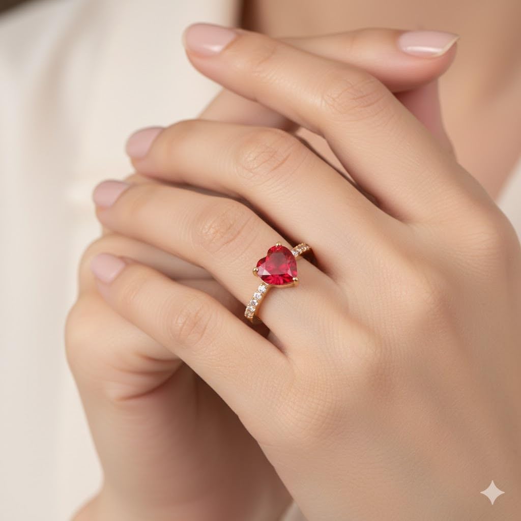 Celebrate love and elegance with this beautiful 2.50 Carat Natural Red Ruby Heart Shape Ring, crafted in a premium gold-plated adjustable setting. Designed especially for women, this charming heart-shaped gemstone ring symbolizes love, passion, and timeless beauty. Ruby (Manik) is known as the stone of confidence and vitality. Associated with the Sun (Surya) in Vedic astrology, it is believed to enhance leadership qualities, inner strength, and positive energy. The heart shape design makes it a perfect romantic gift for birthdays, anniversaries, Valentine’s Day, or special occasions. The adjustable band ensures a comfortable fit for most finger sizes, making it both stylish and practical for daily wear.