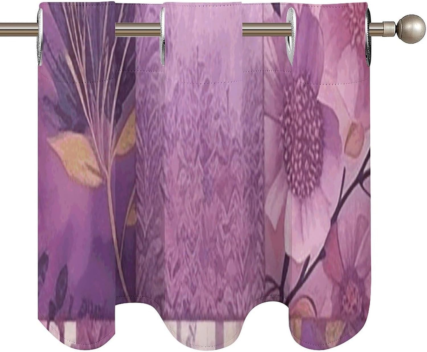 Introducing our 2-piece Purple Flowers Collage Curtain Valance, a wonderful blend of functionality and elegance to elevate your window decor. Measuring 52 x 18.1 inches per piece, this Purple Flowers Collage curtain set fits most windows, making it a versatile choice for any room. Crafted from premium curtain fabric, it combines soft touch with long-lasting durability, bringing comfort and practicality to your space. This Purple Flowers Collage modern curtain features an elegant appearance and smooth texture, adding sophistication to your windows. As a light filtering curtain, it gently softens sunlight while providing moderate privacy, creating a warm glow—ideal for spaces wanting natural light without harsh glare. It also boasts impressive light-blocking performance, insulating your room from heat, protecting furniture and floors from UV damage, and creating a comfortable environment for better sleep. Designed for convenience, each Purple Flowers Collage curtain has a 4.5cm curtain hole for easy installation on most rods. The washable fabric maintains its shape and softness after multiple washes, with nice drape to keep it neat. Whether you need a kitchen curtain, cafe curtain for a cozy nook, or tier curtain for layered decor, this Purple Flowers Collage set fits well. Versatile and stylish, this Purple Flowers Collage set works seamlessly as Valances or Curtain Valance, complementing various decor styles. It can also be used as a printed curtain to add a subtle decorative touch to your living room, bedroom, kitchen, or other spaces. Suitable for most windows, this Purple Flowers Collage modern curtain is a practical that combines functionality with timeless style. Upgrade your window treatments with our 2-piece Purple Flowers Collage Curtain Valance set—where quality, style, and functionality meet.