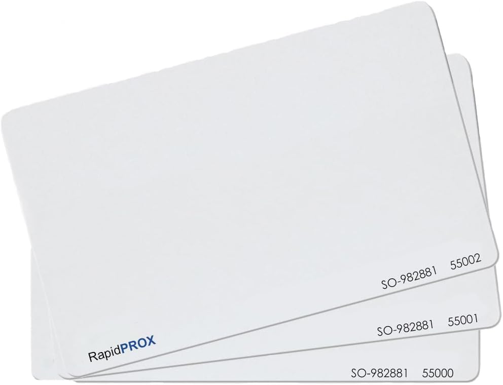 RapidPROX replaces HID 1386LGGMN ISOProx Cards. These cards use 26-bit format (H10301) with Facility Code 25 and come pre-encoded with a sequential number range. RapidPROX credentials are a high-quality, USA-made alternative to expensive OEM cards and are backed by a Lifetime Warranty. RapidPROX cards are trusted nationwide for employee ID badges, facility access control, gym entry, staff IDs, and more. We offer multiple styles, configurations, and a full line of colored cards and key fobs, with optional custom imprinting available within 48 hours. Each card includes a professionally printed external number for easy identification.