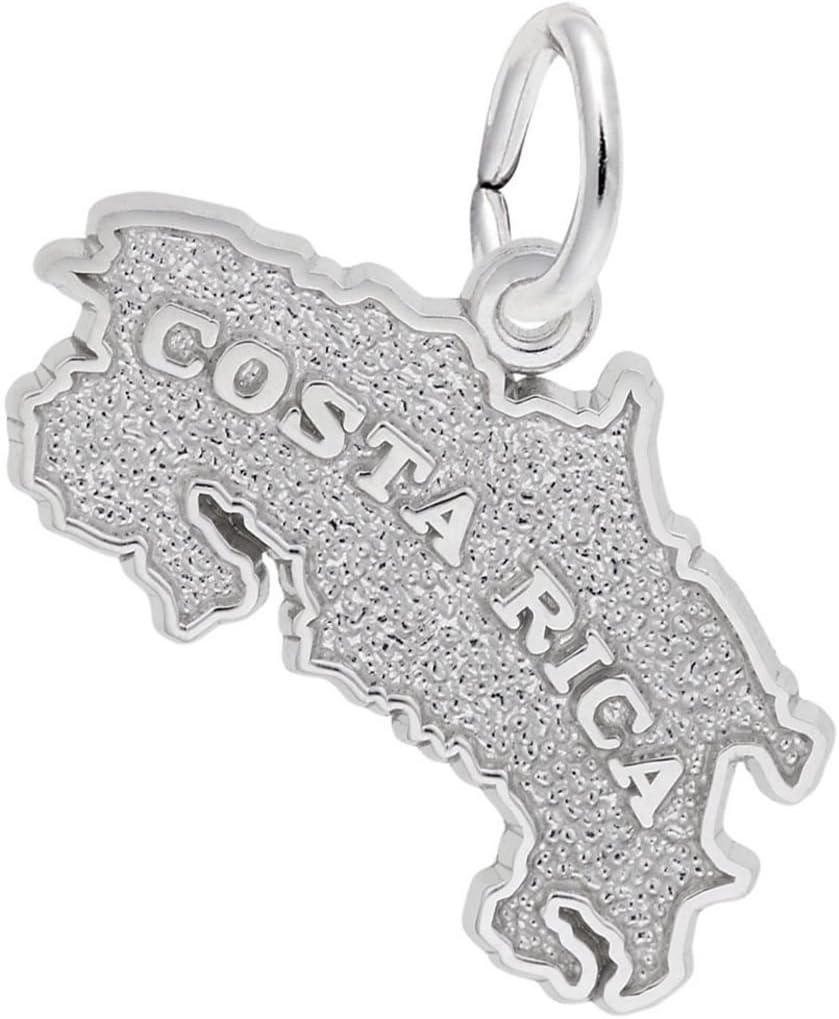 Costa rica map charm by Rembrandt. Measures approximately 0.65 inches x 0.95 inches (16.43mm x 24.18mm). Available in several metals.