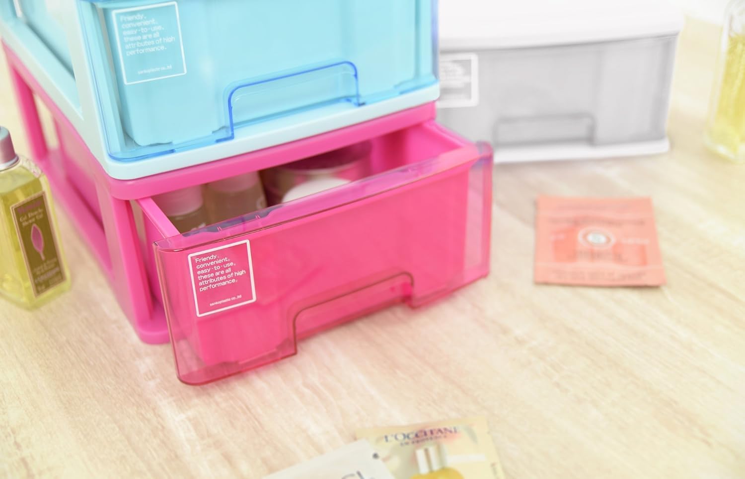 Organize stationery and other small items that tend to be messy. The contents are not visible, so it can be used in a variety of occasions regardless of where you are. Pop color to accent your room.