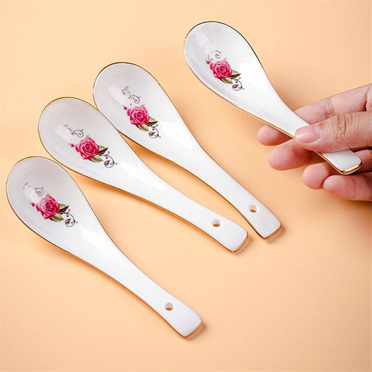 Product name: Eurasian rose porcelain spoon set of 10Product material: bone chinaProduct features: high-quality porcelain spoons are suitable for all kinds of soup, coffee, ramen, porridge, dessert, kitchen cooking, etc.Applicable places: hotels, restaurants, kitchens, etc.prompt:1. Please check the size and color before buying.2. Except for the spoon shown in the product photo, other items are not included.3. Please note that different monitors may cause slight color differences, please understand.4. Due to manual measurement, there is a small error, please refer to the actual product, thank you.5. If you find any problems with our products, please feel free to contact us via email, we will solve the problem as soon as possible.6. Welcome your sharing and feedback, so that we can provide you with better products and services.*Generally, the logistics is usually sent within 1-5 days, and the estimated arrival time is within 10-20 days.They allow you to replenish cutlery in time and help you complete your tableware set when you find that the set is missing a spoon.