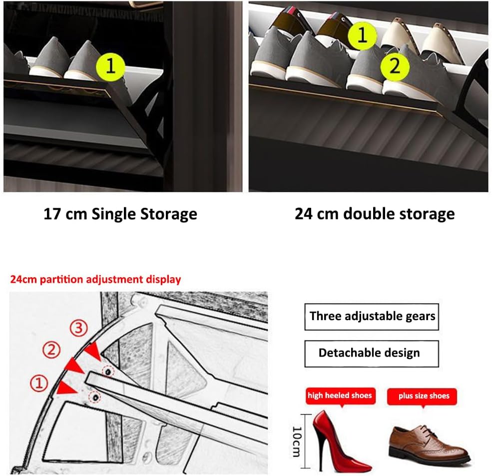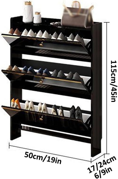 Introducing our stylish Entryway Shoe Cabinet, designed to elevate your home organization while enhancing your decor. Crafted from high-quality wood and finished with a sleek paint process, this cabinet effortlessly combines functionality with aesthetic appeal. With ample storage capacity, our shoe cabinet optimizes the often-overlooked space behind your door. It provides a practical solution for those with limited entryway space, allowing you to keep your shoes off the ground and neatly organized. Say goodbye to clutter and welcome a tidy entrance where you can easily find the shoes you need, whether heading out for work, a casual outing, or an event. This versatile shoe cabinet is perfect for various areas in your home, including the living room, balcony, foyer, or hallway. Available in classic black, it complements any interior style, ensuring that your entryway remains both stylish and functional. Choose from two sizes to suit your needs: the three-door design with dimensions of 50cm in length, 17cm in width, and 115cm in height, or the slightly wider option at 50cm in length, 24cm in width, and 115cm in height. Both options provide an excellent balance of space and accessibility. Invest in our Entryway Shoe Cabinet to not only enhance your storage solutions but also protect your footwear from dust, keeping them in excellent condition. Embrace a more organized lifestyle with this essential piece of furniture that brings both convenience and elegance to your home.