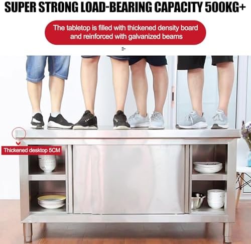 Stainless Steel Work Table with Cabinet is a heavy-duty commercial kitchen prep table designed for versatility in various settings, including home, restaurant, hotel, and garage. Featuring a robust construction, this table offers a spacious work of 100 * 40 * 80cm (39.4 * 15.7 * 31.5in). Equipped with sliding doors, the cabinet provides convenient storage for all your essential tools and supplies, ensuring easy access and nization. This metal workbench is perfect for any cooking or preparation needs.
