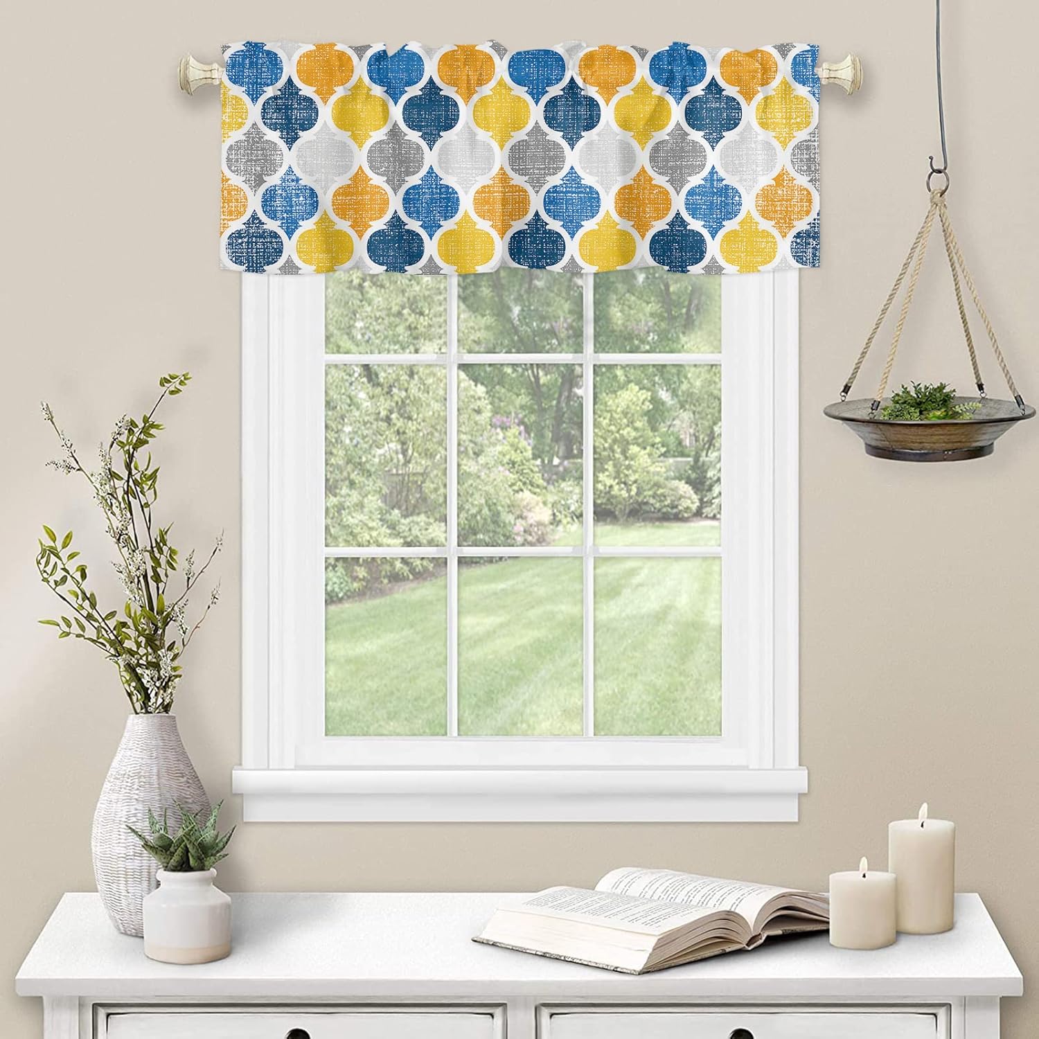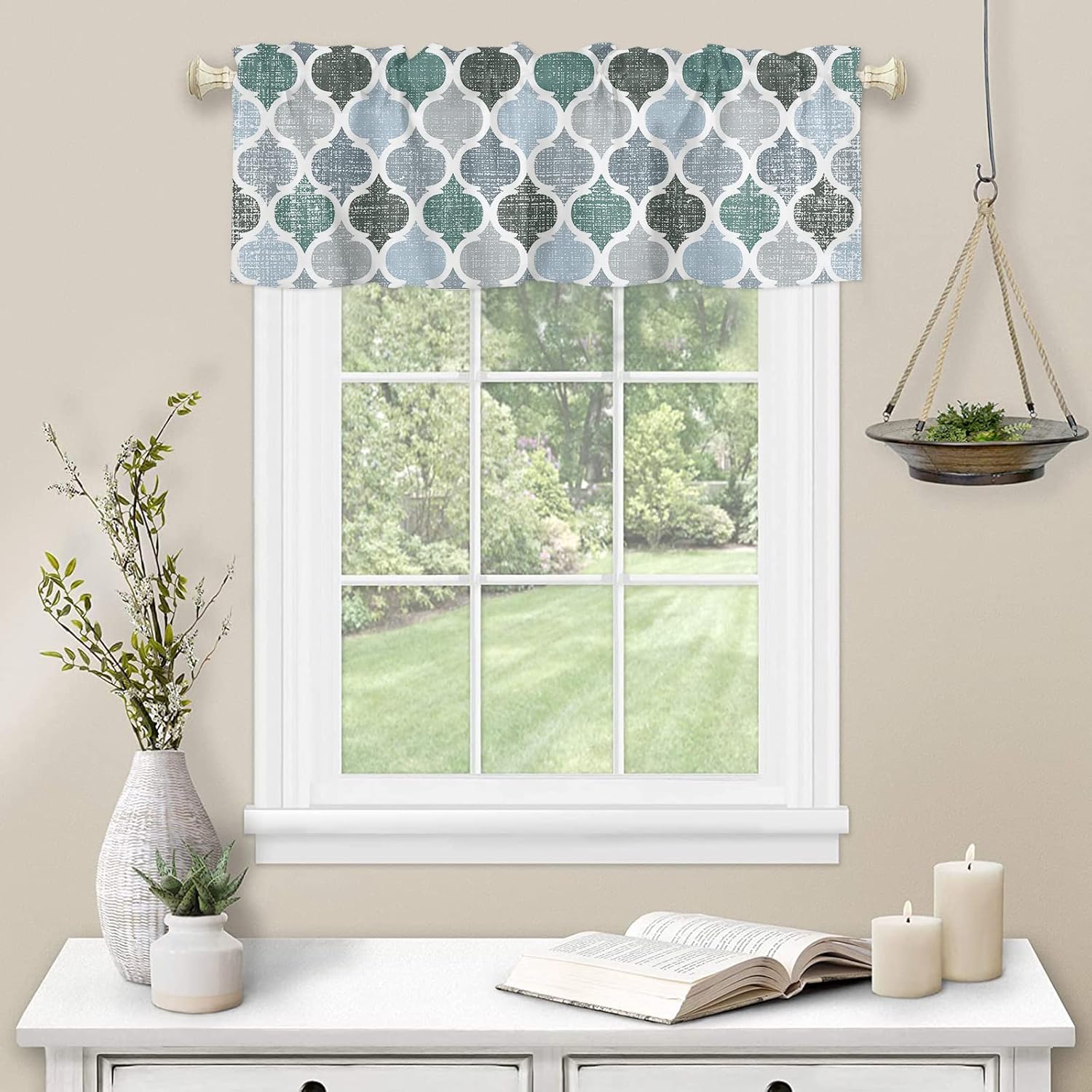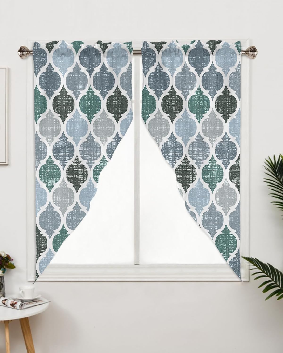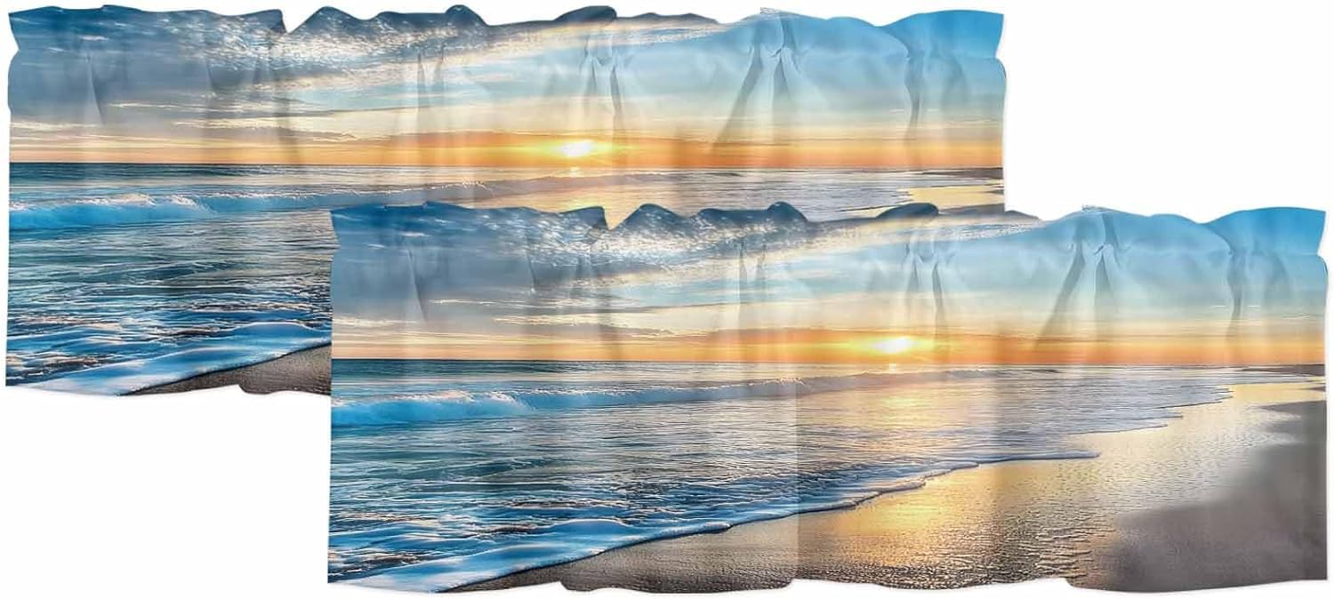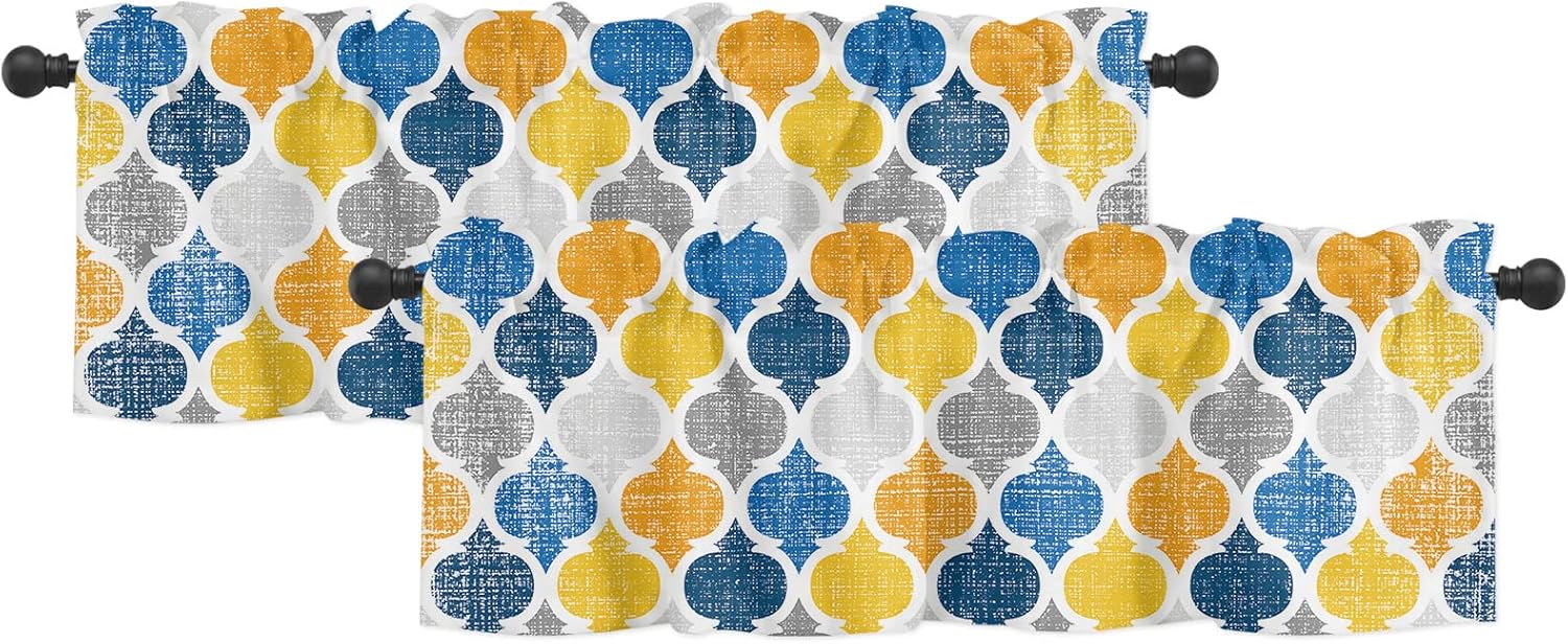 Our kitchen window curtains are made of premium polyester fiber, which are softer and more private than ordinary curtains, and protects your privacy, allowing you to enjoy your vacation worry-free. Kitchen valance curtains rod pockets measure 3 inches and fit most straight rods. They are easy to install and just put the kitchen curtains up the rods. Perfect for busy family. These kitchen curtains valances feature special scalloped hem design with exquisite stitching that make them flat and comfortable, giving you delicate touch and can be used repeatedly. Window treatment tiers cover the top of your windows to provide you with a level of privacy while keeping the room ventilation and breathability, making them the perfect curtain decoration. Thse valances for window are printed with HD patterns and come in a variety of styles, giving you a variety of choices to match your room decoration and show your personal style. Our kitchen curtains and valances sets are easy to care and clean, allow machine washing, freeing your hands and making your life easier. Specification Packaging: 2 x Swag Curtains Panels Size: 28x36 Inch / 36x36 Inch / 36x45 Inch/ 36x63 Inch